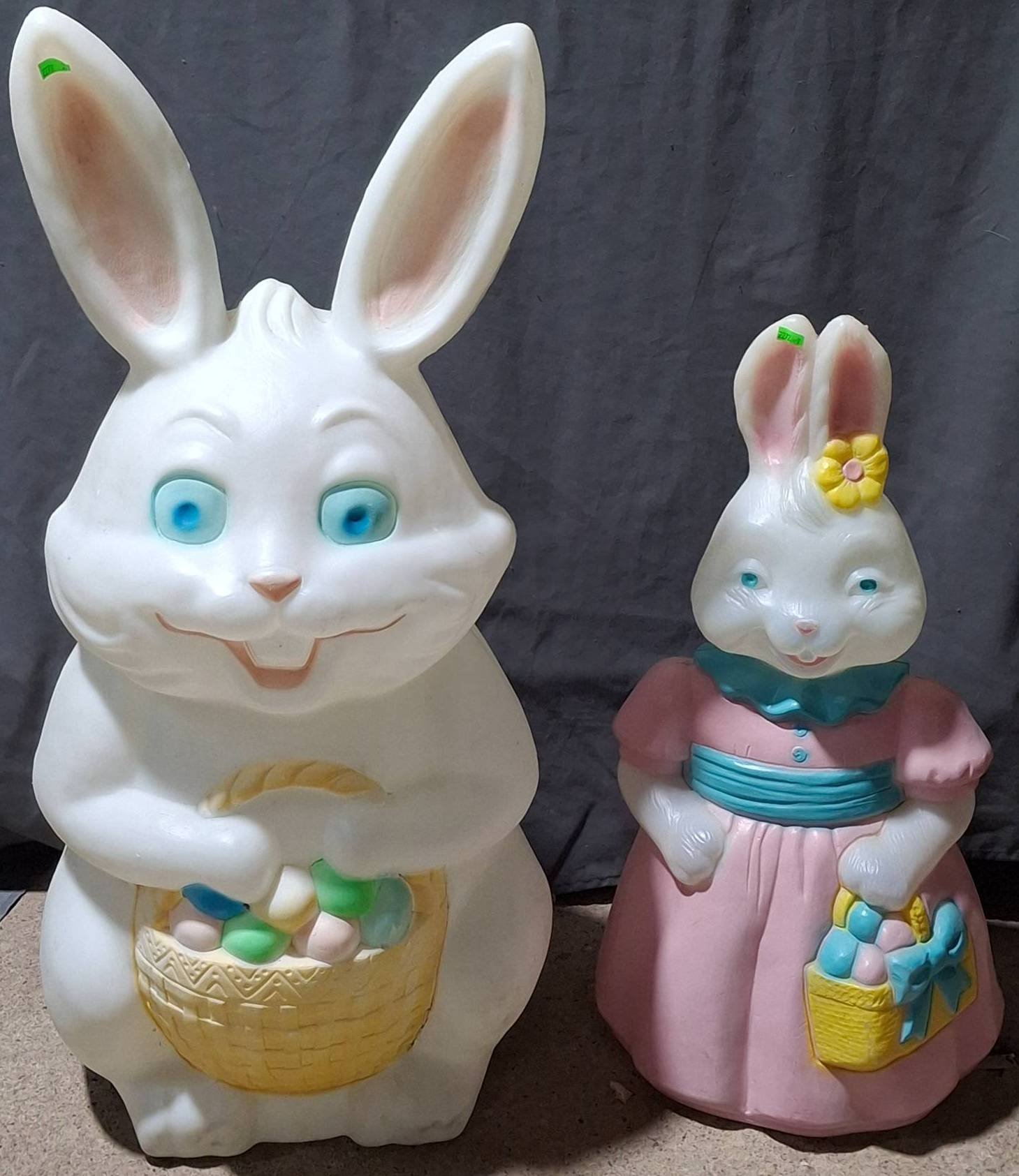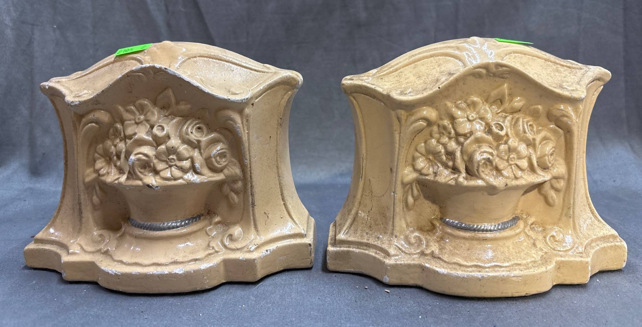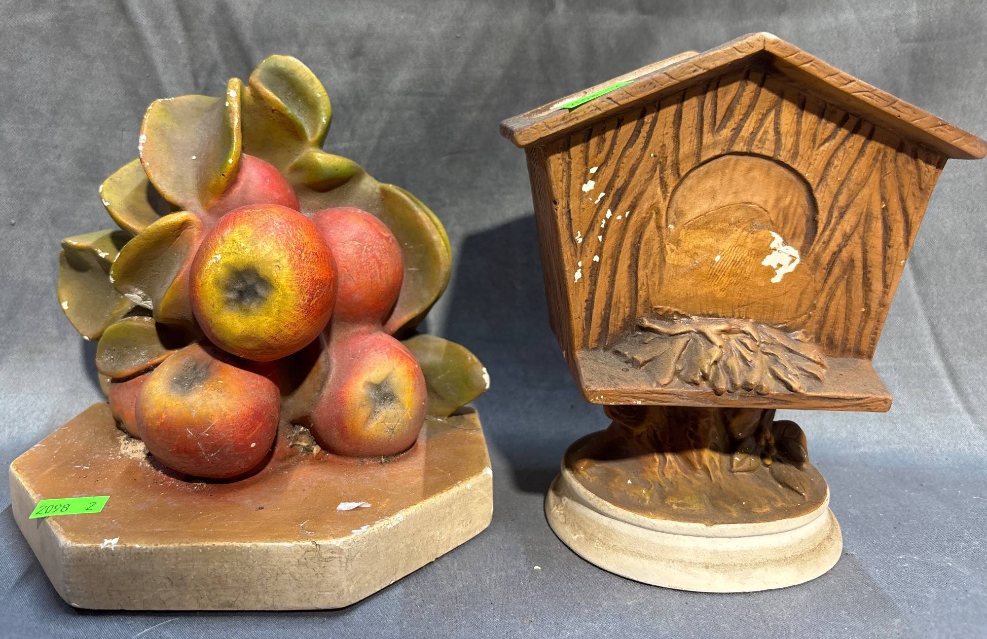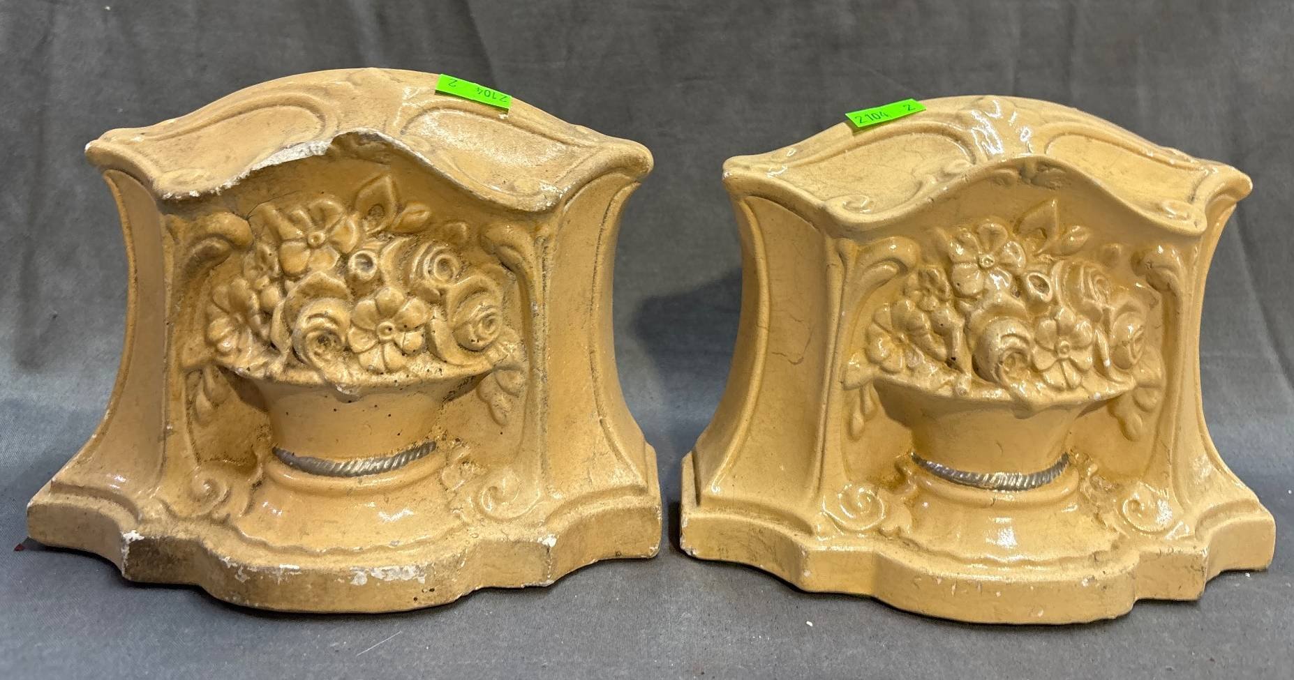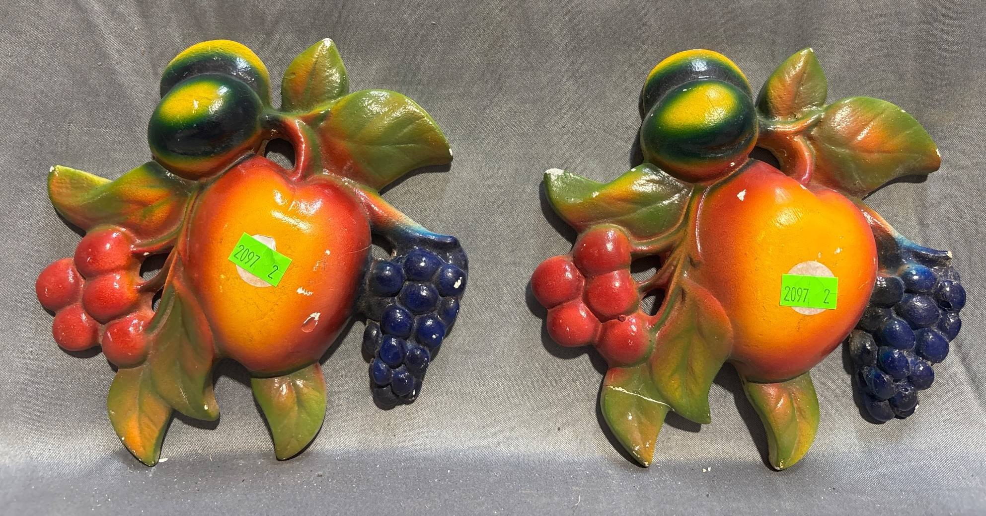 2082 2 Hand-Painted Chalkware Wall Plaques with Pastoral Figures 7”x5”, Chips