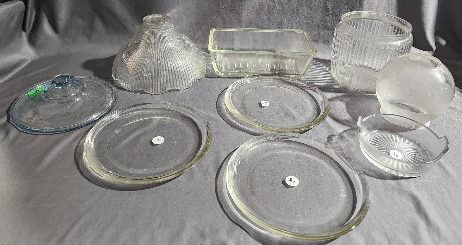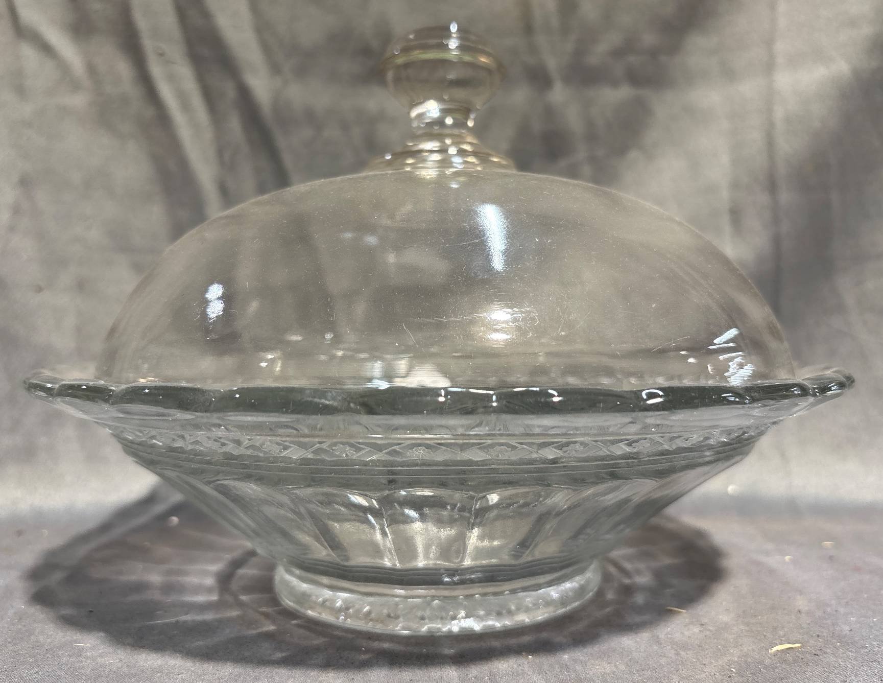 2083 Pressed Glass Covered Bowl with Starburst Design 9”x3”