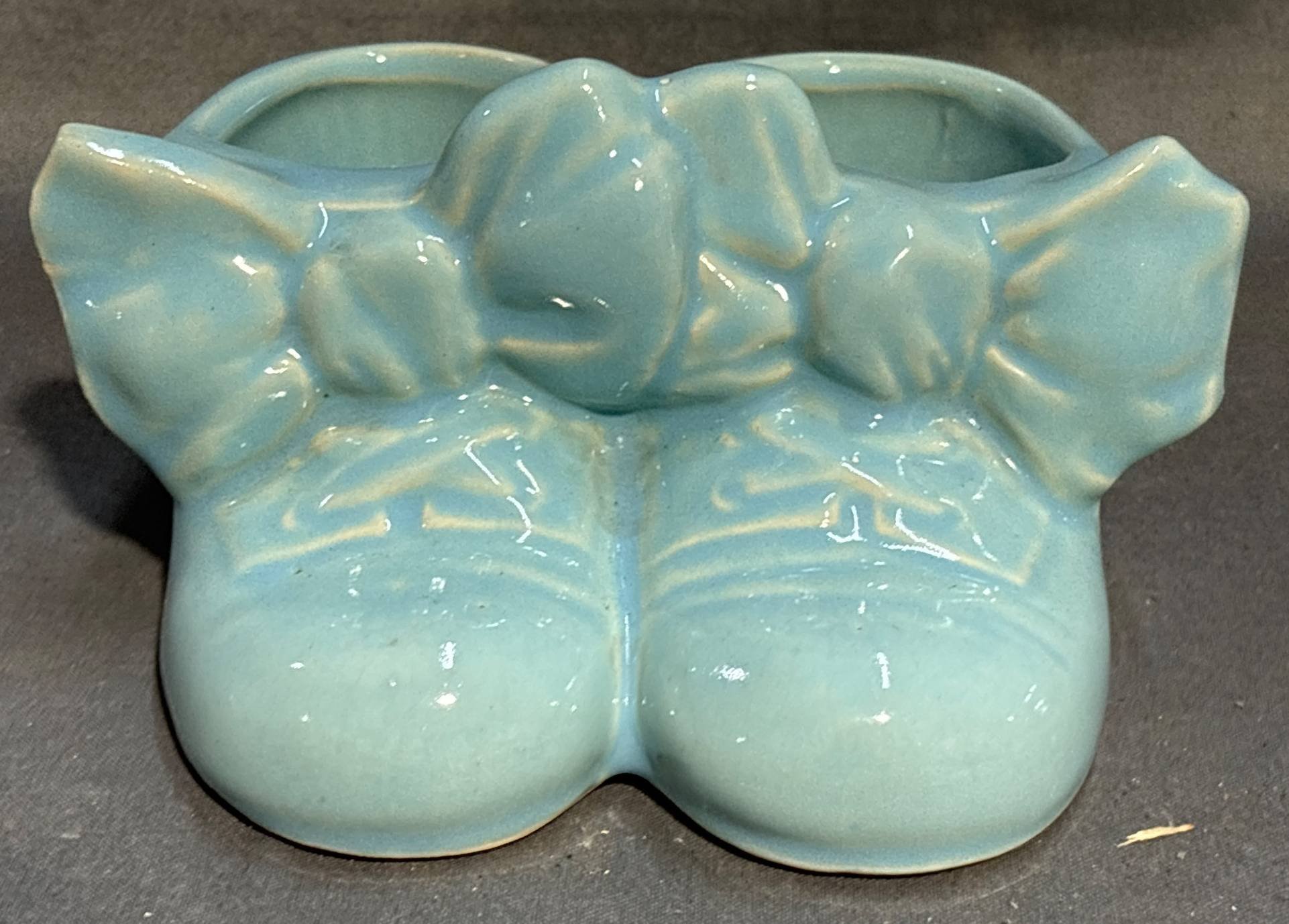 2085 Blue Double-Slot Planter with Bow on Shoes Design 4.5”x4.5”x2”
