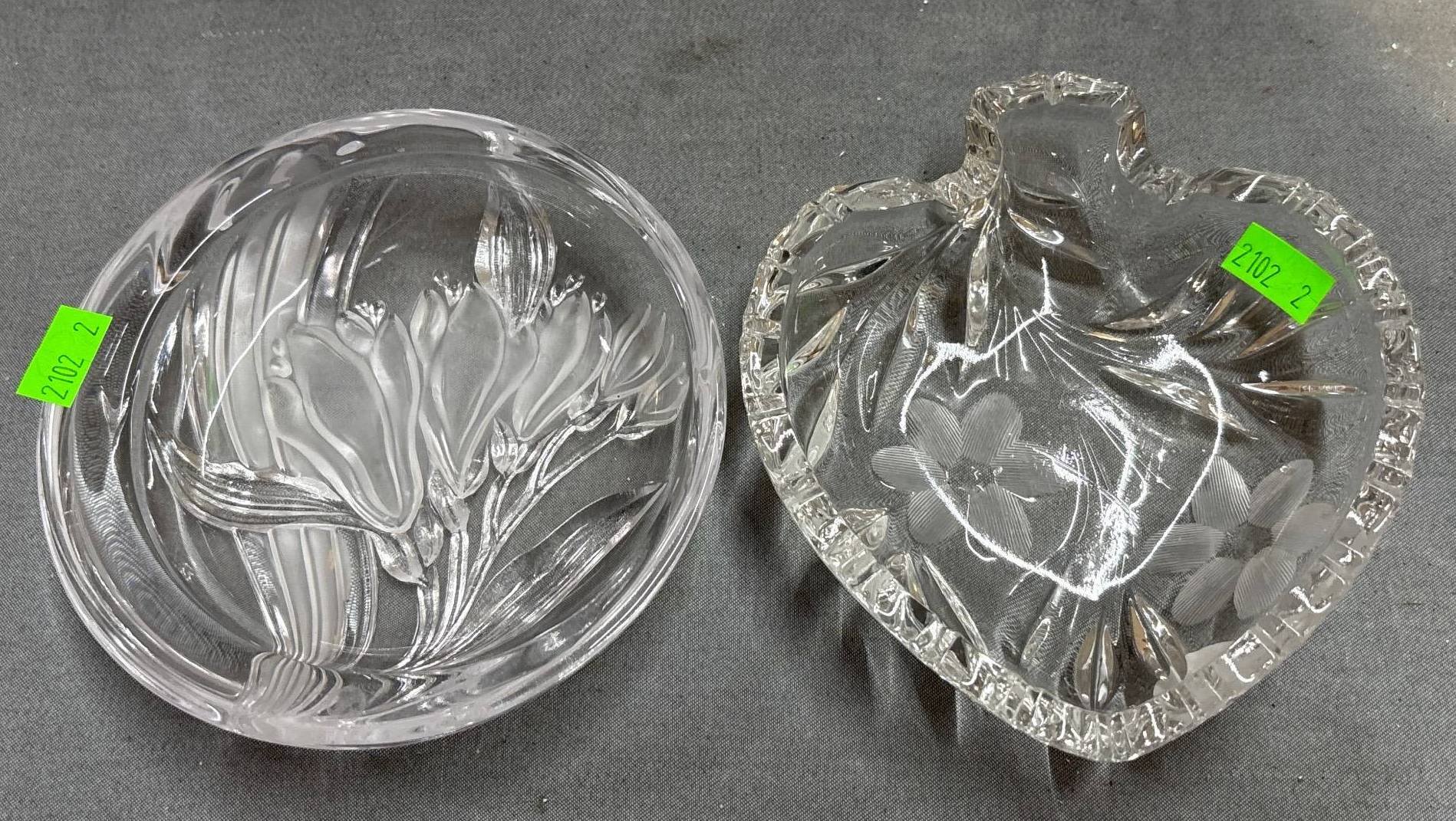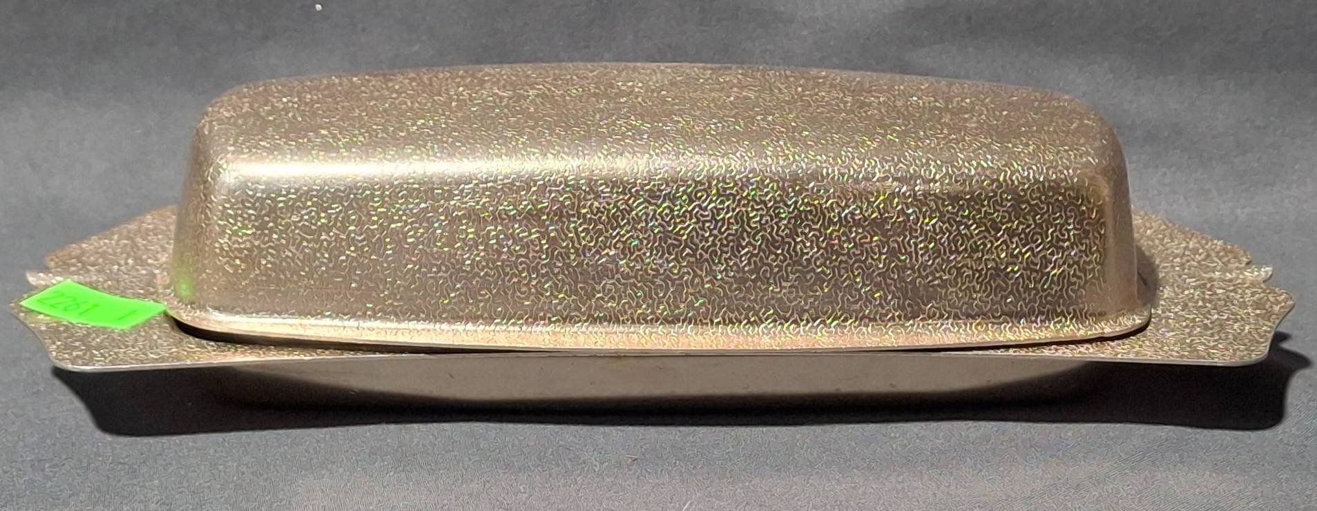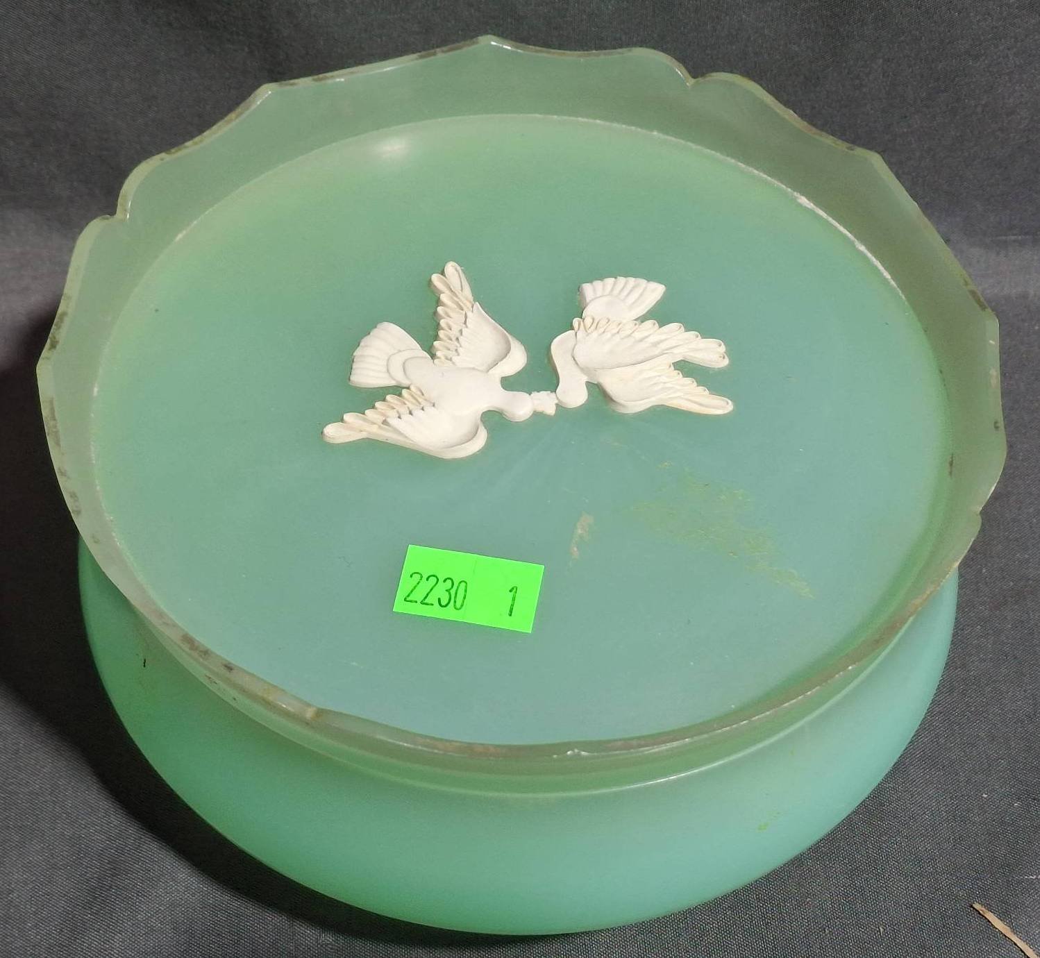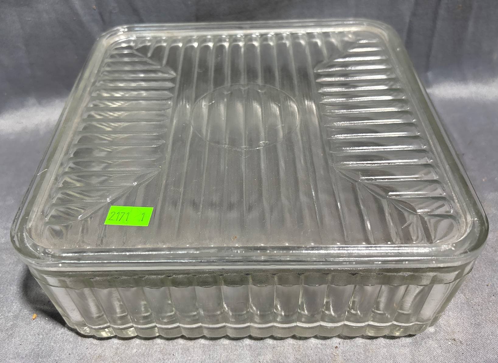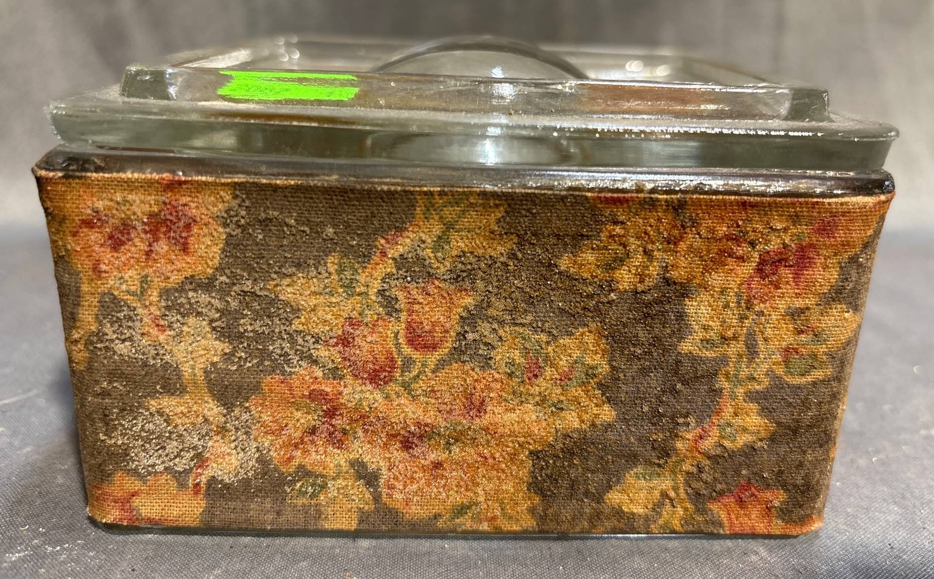 2087 Glass Lidded Box with Fabric-Covered Exterior 5”x4”x2.5”