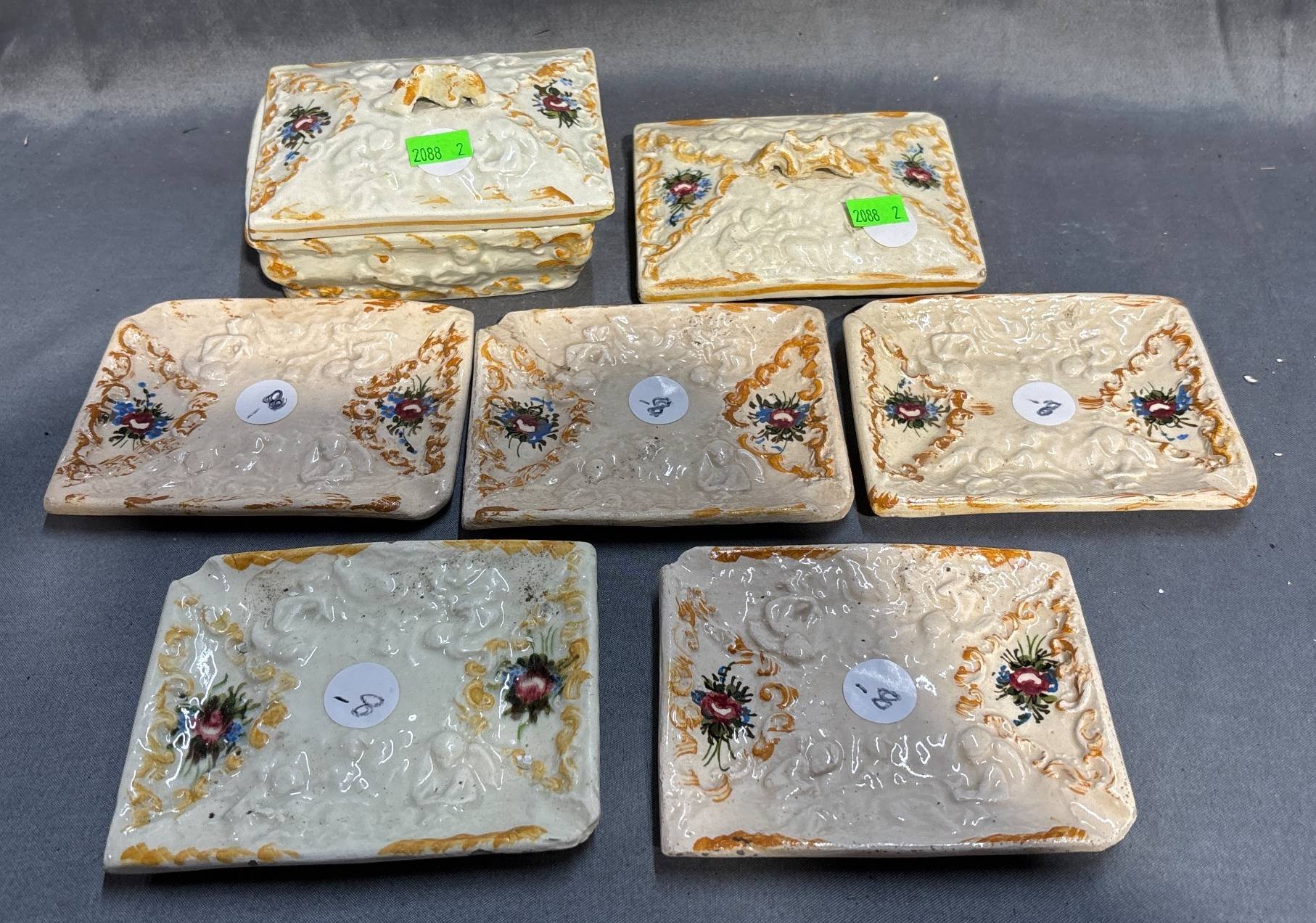 2088 Handcrafted Glazed Box with Lid & 5 Matching Trays Marked Italy 4.5”x3.5”