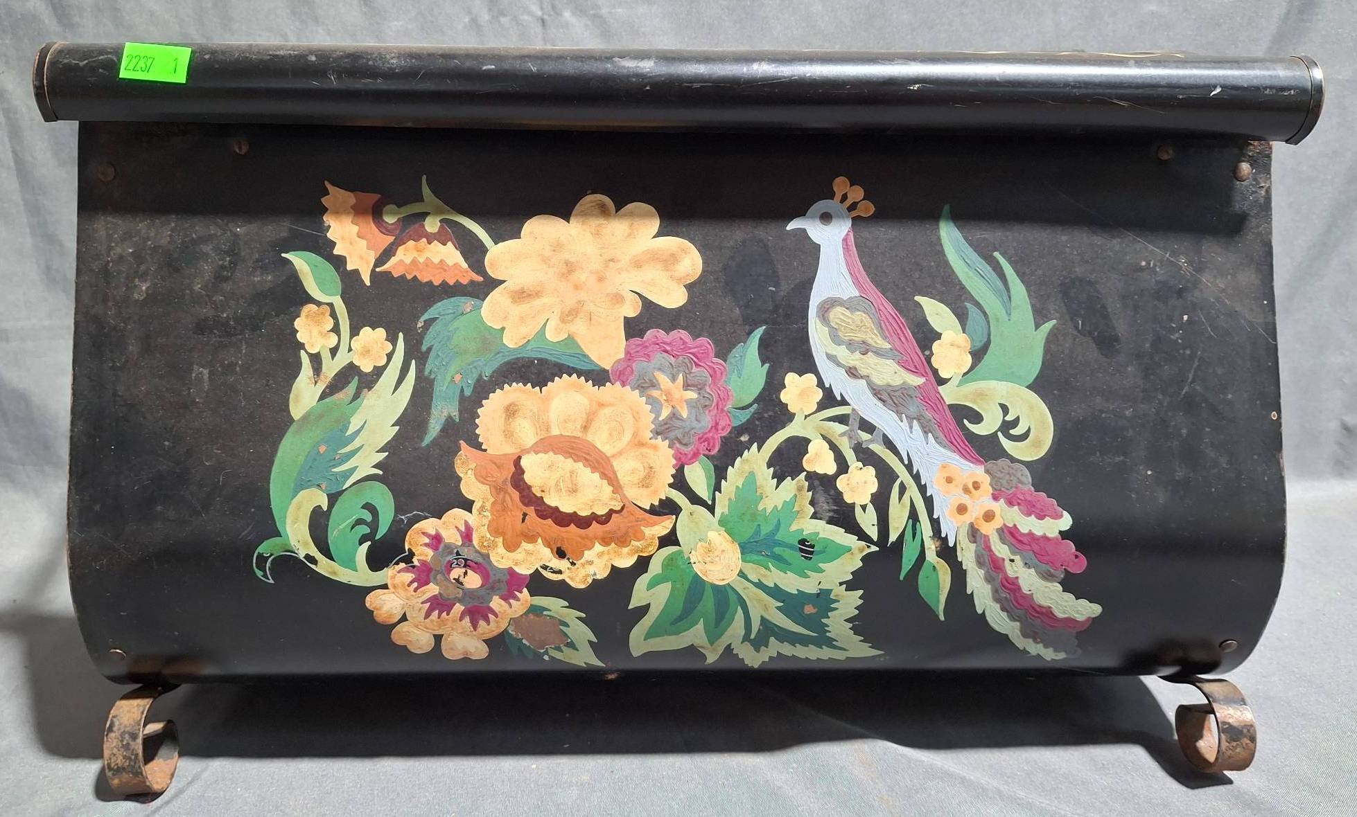 2061 Metal and Glass Candleholder with Painted Bird Design 5”x5”x8”
