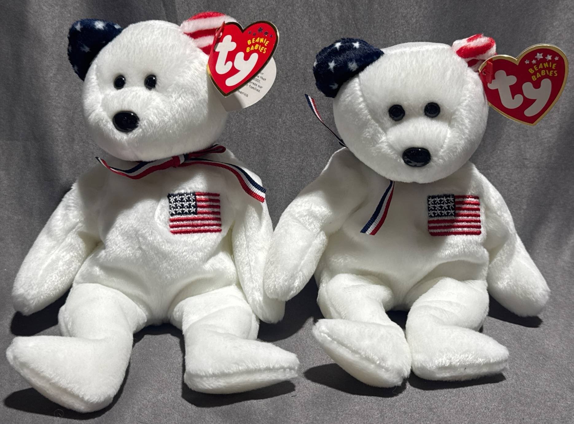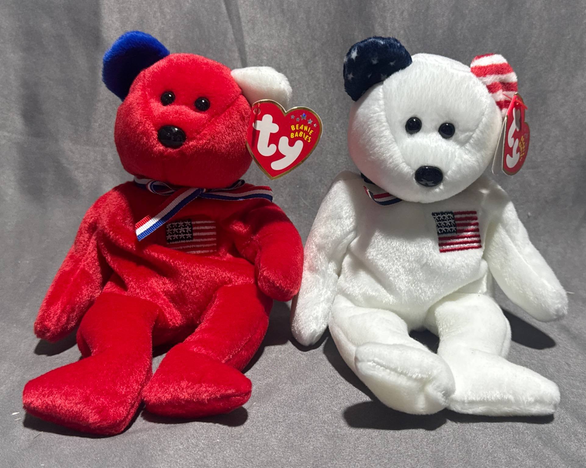 30005 2 TY Beanie Babies ‘America’ Bears with Patriotic Design, 5.5” x 8”
