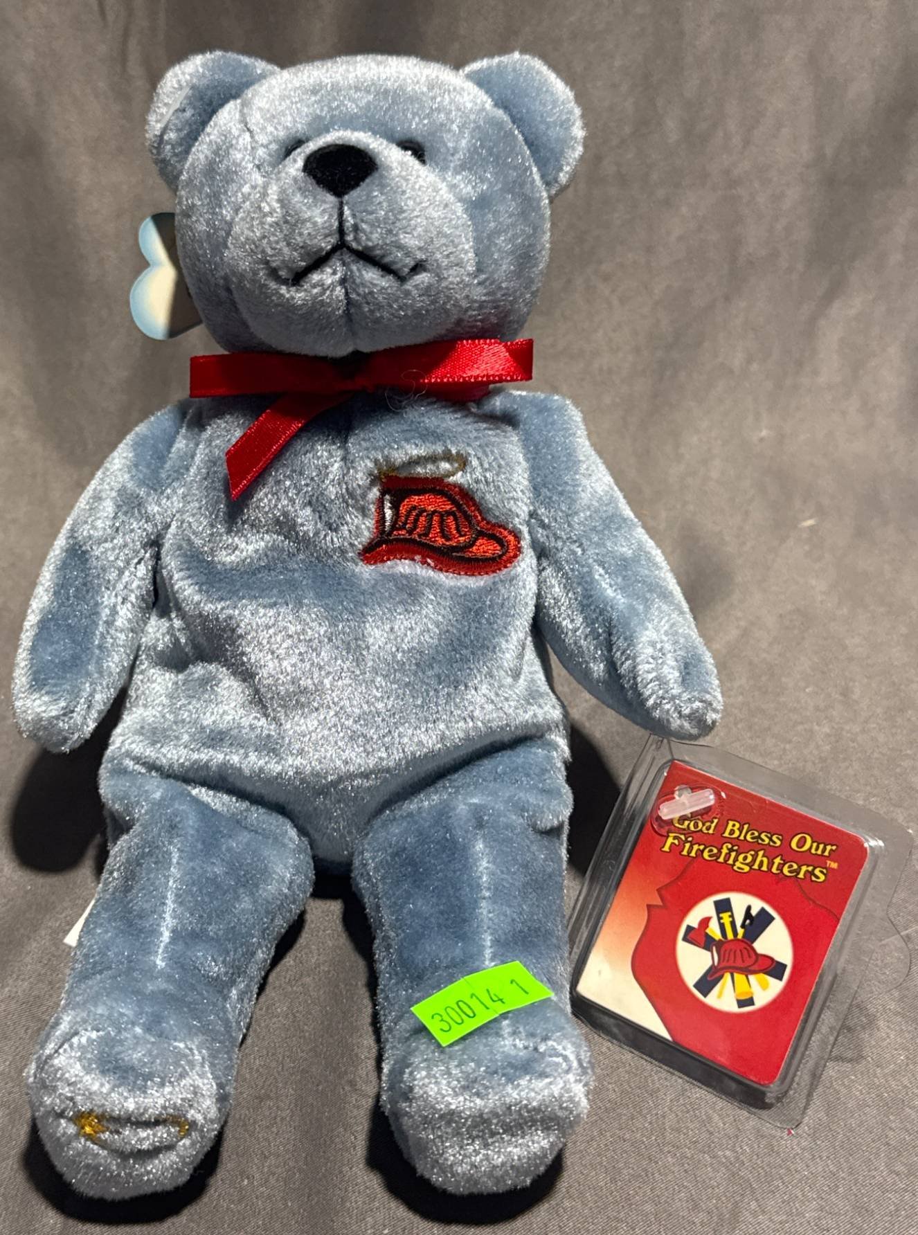 30014 Holy Bears Firefighter Bear Plush with Embroidered Patch and Tag, 5.5” x 9”