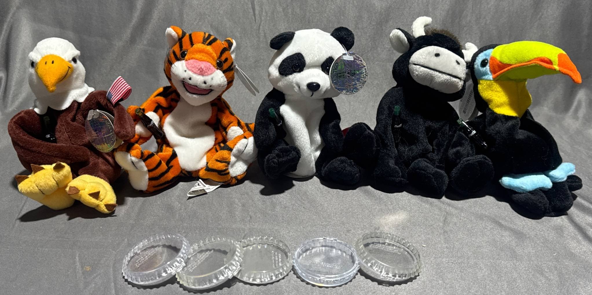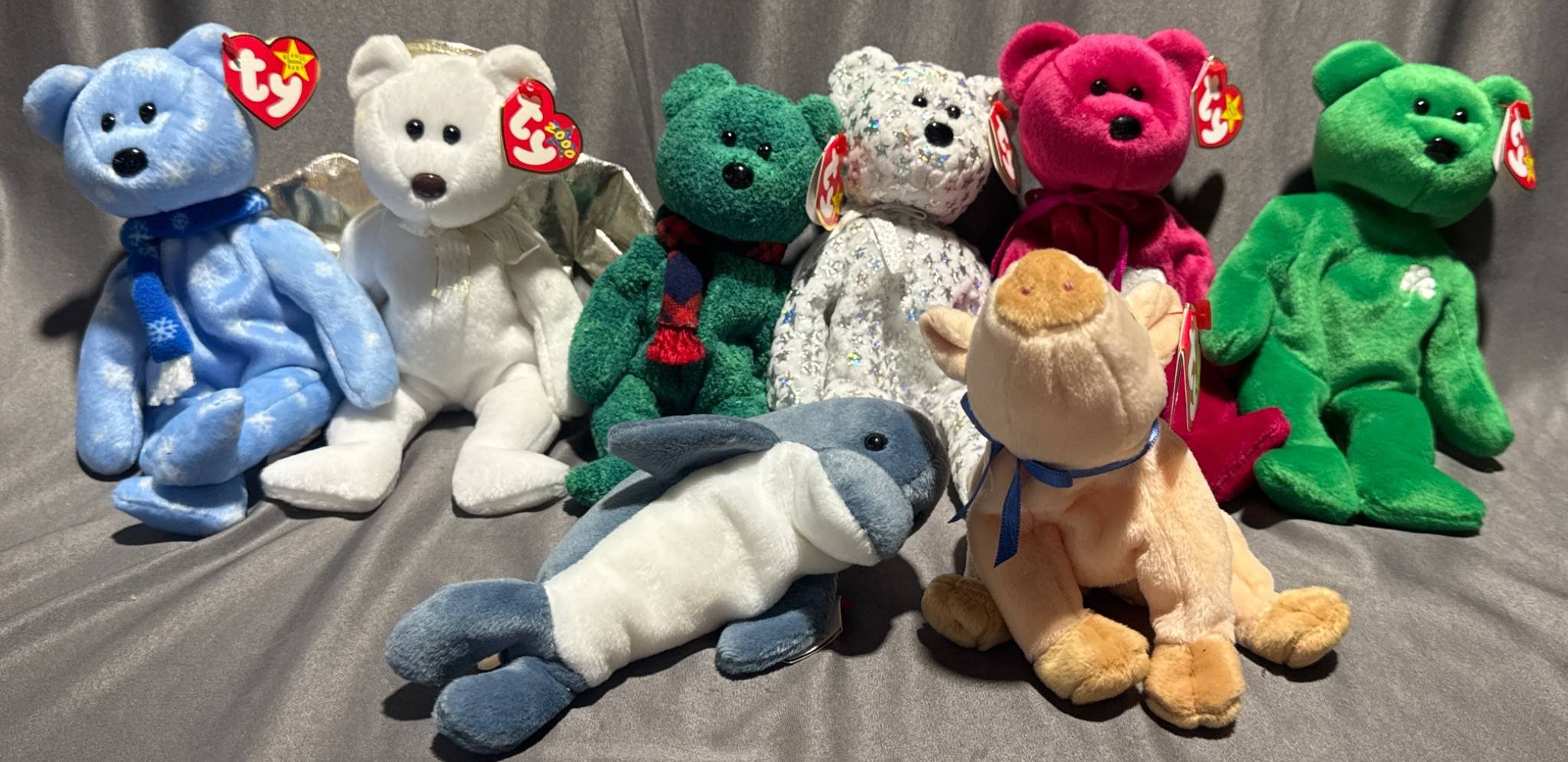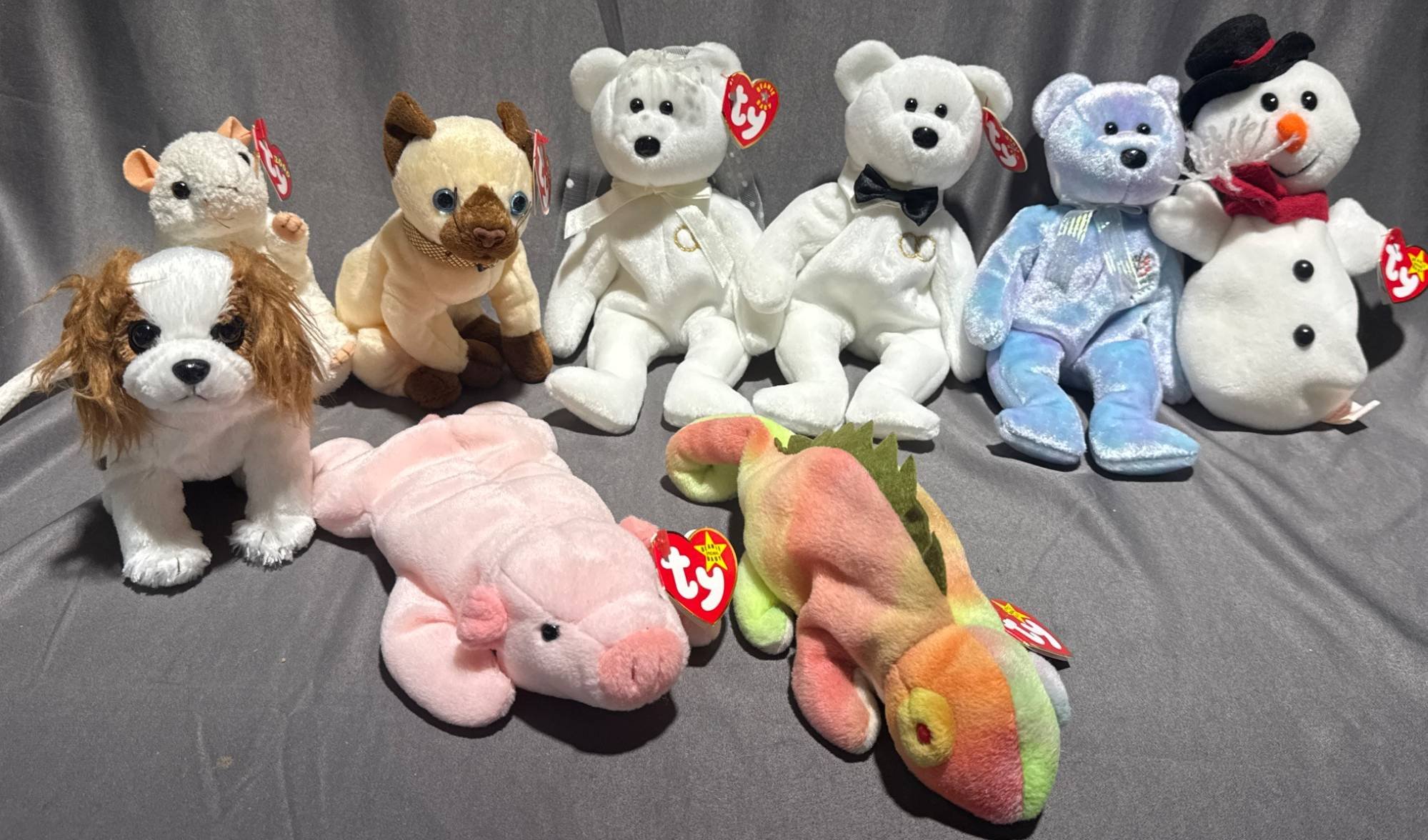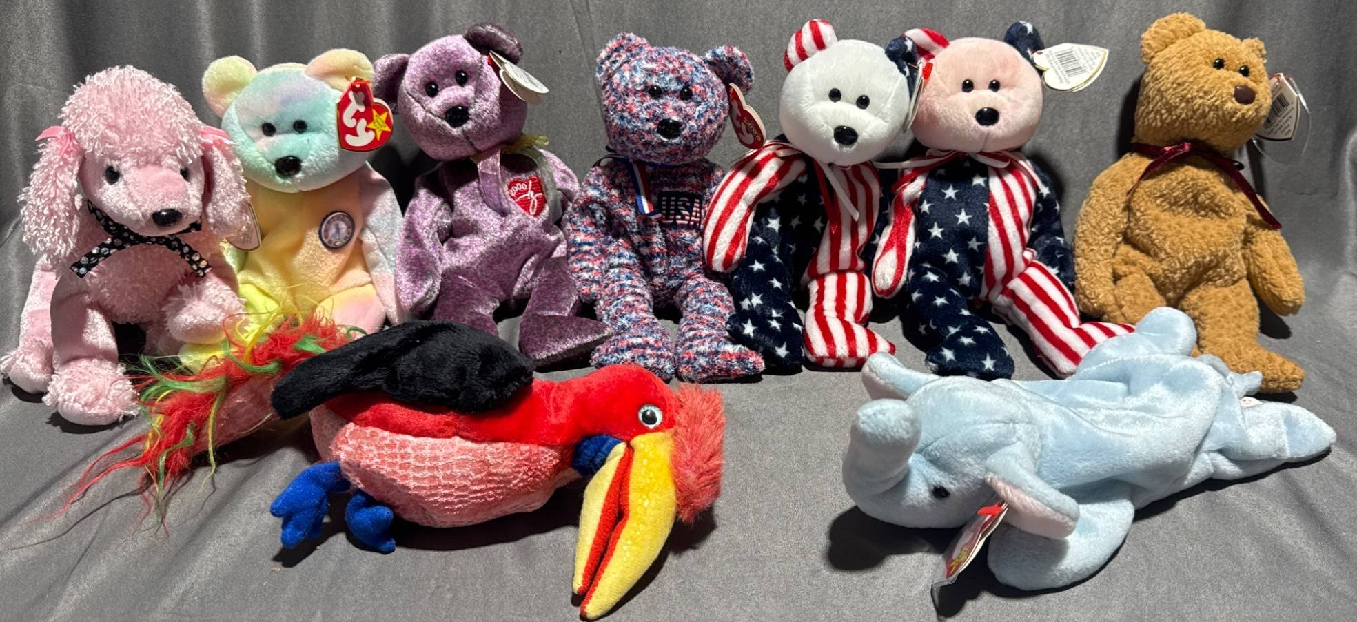 30090 9 TY Beanie Babies Plush Toys Inc. Claude, Starlett & Celebrate, 4-8?