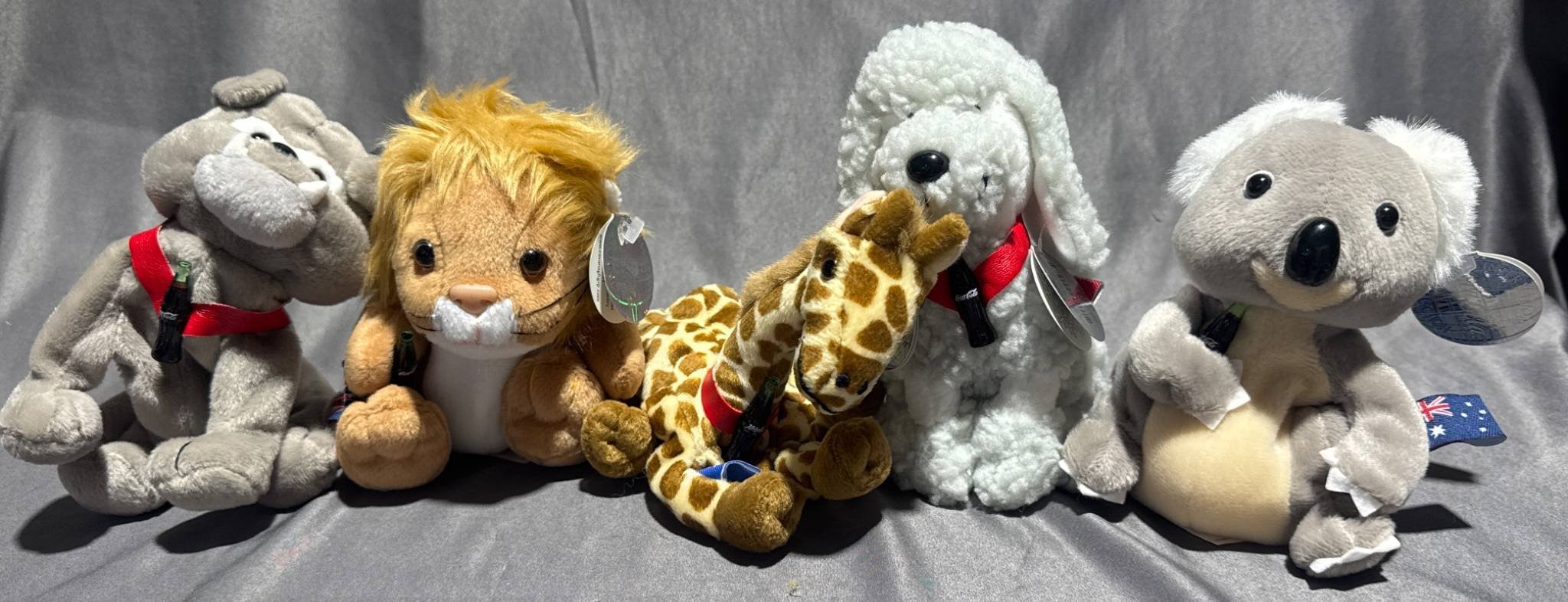 30019 5 Coca-Cola Plush Animals Inc. Koala, Poodle & Lion, 2”-8.5”