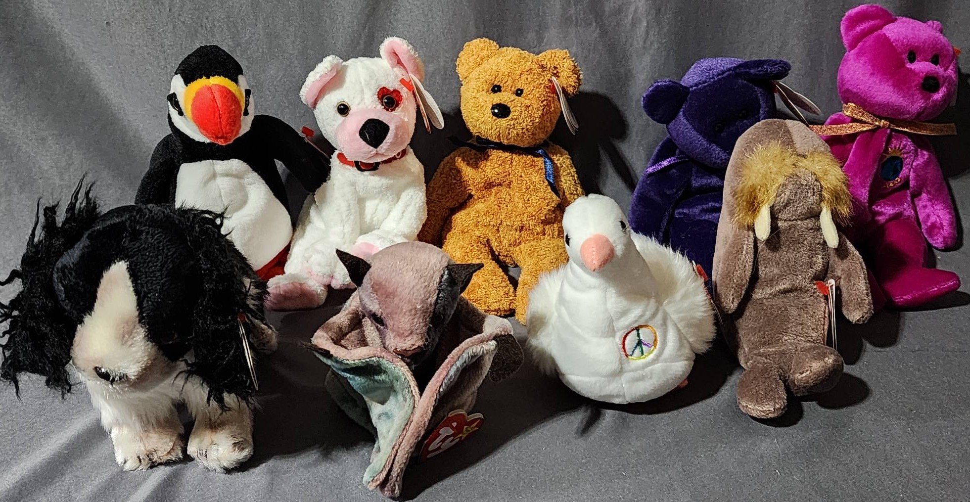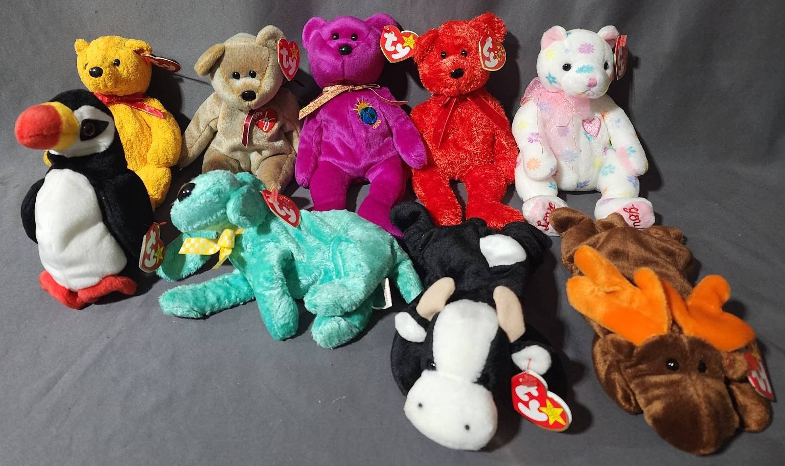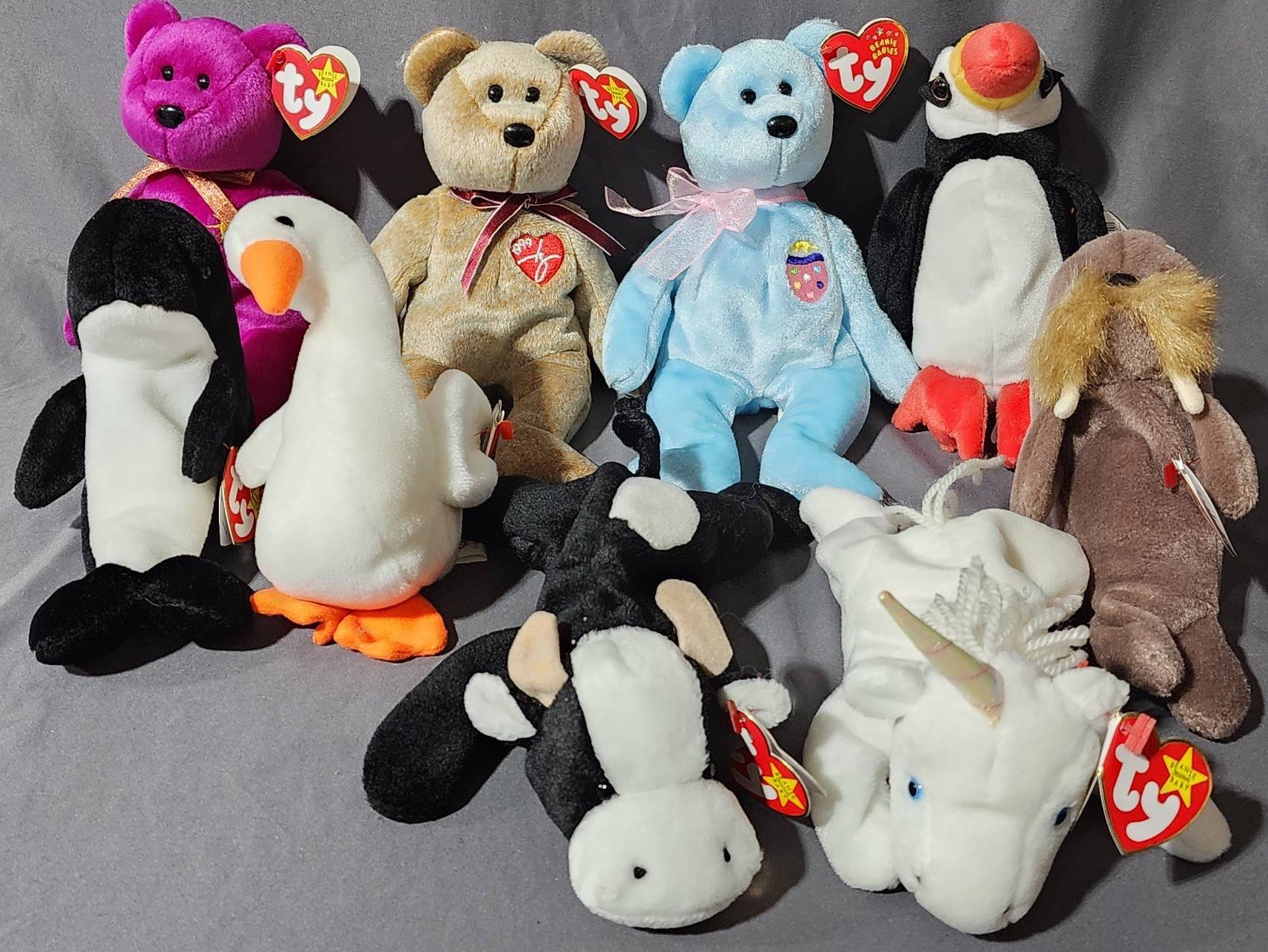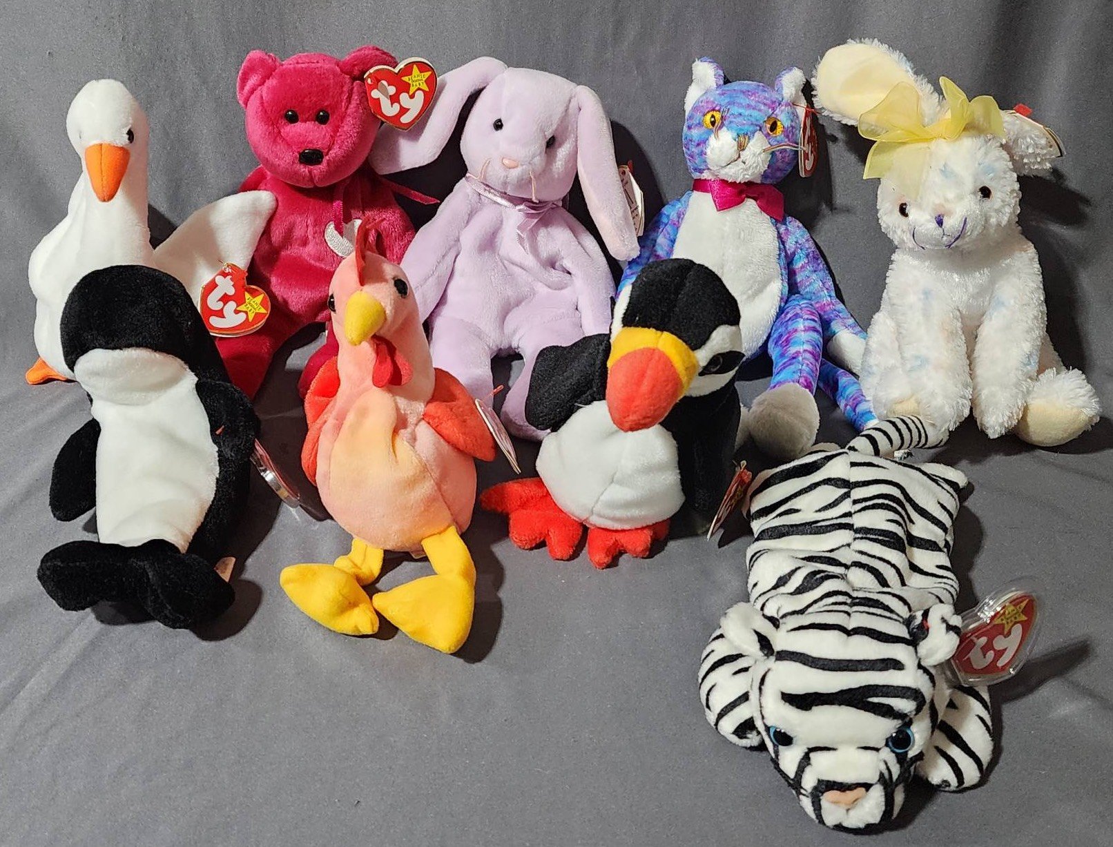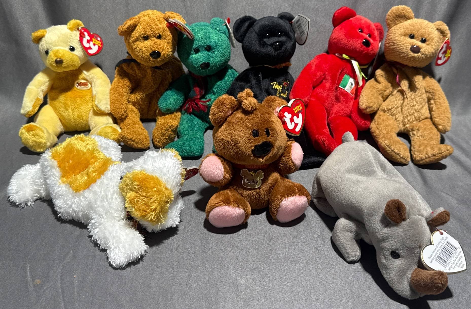 30053 9 TY Beanie Babies Plush Toys With Tags, Various Characters and STYles