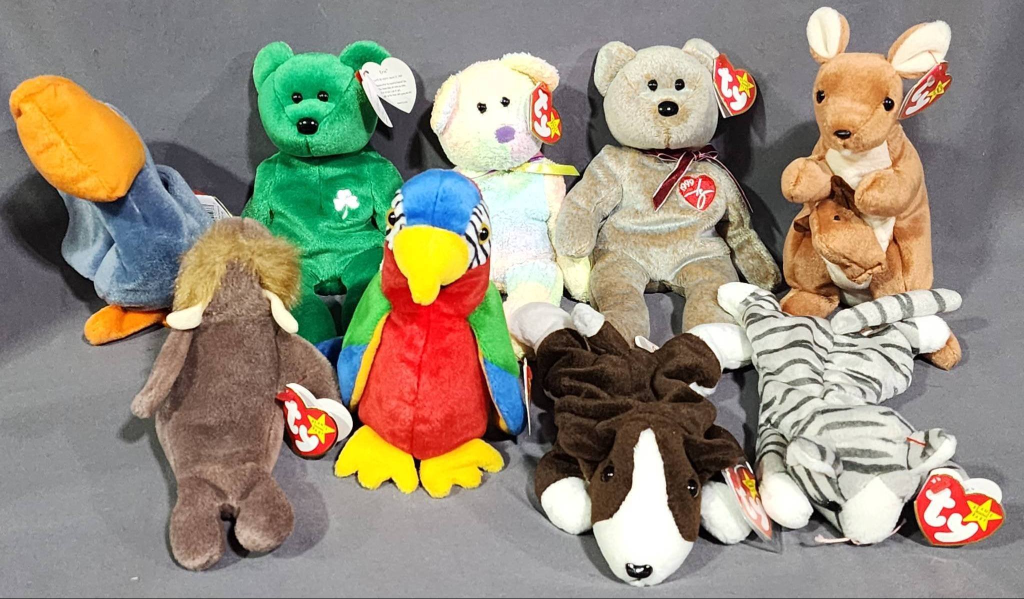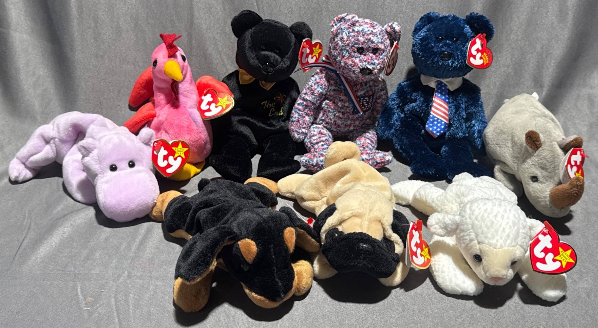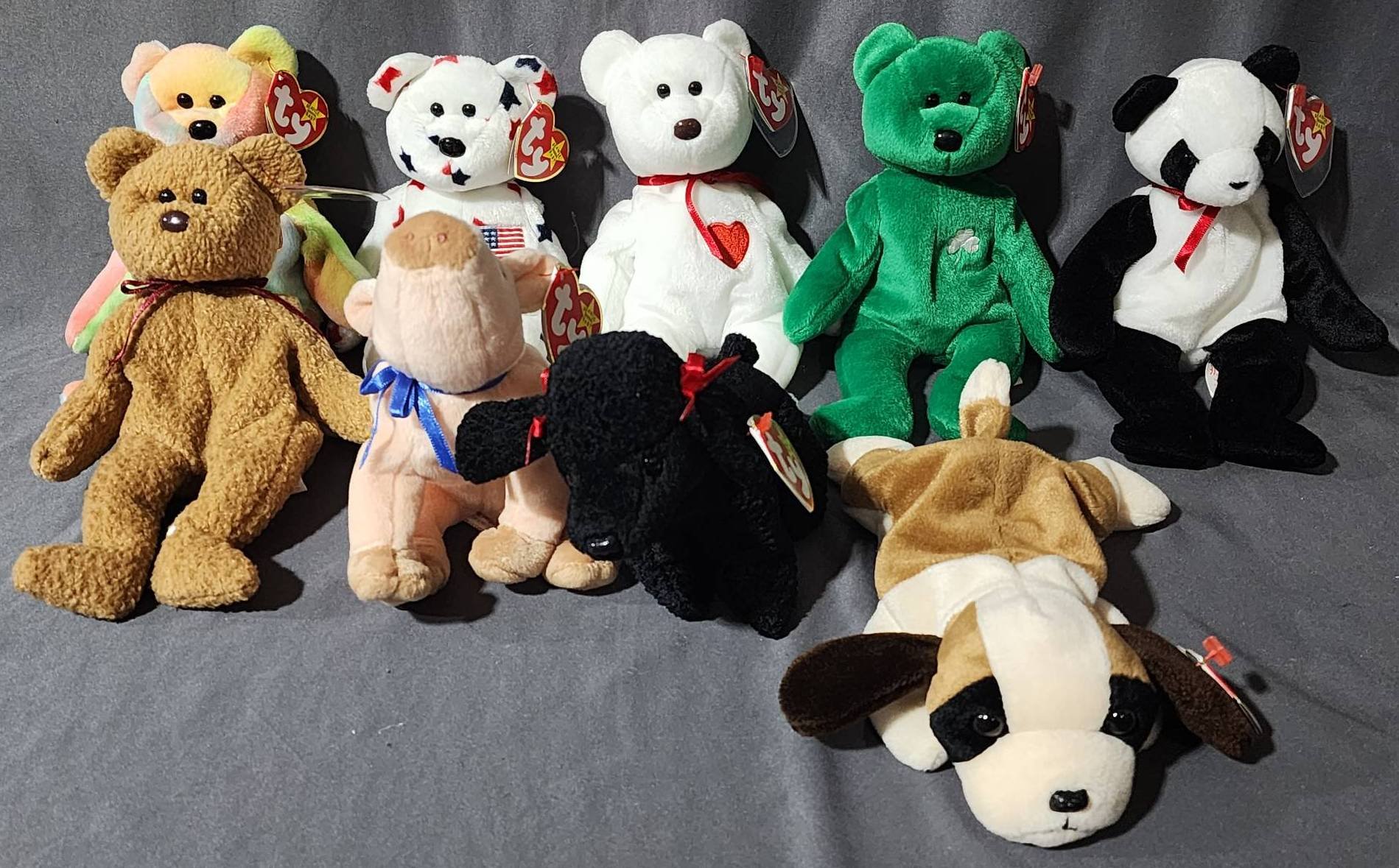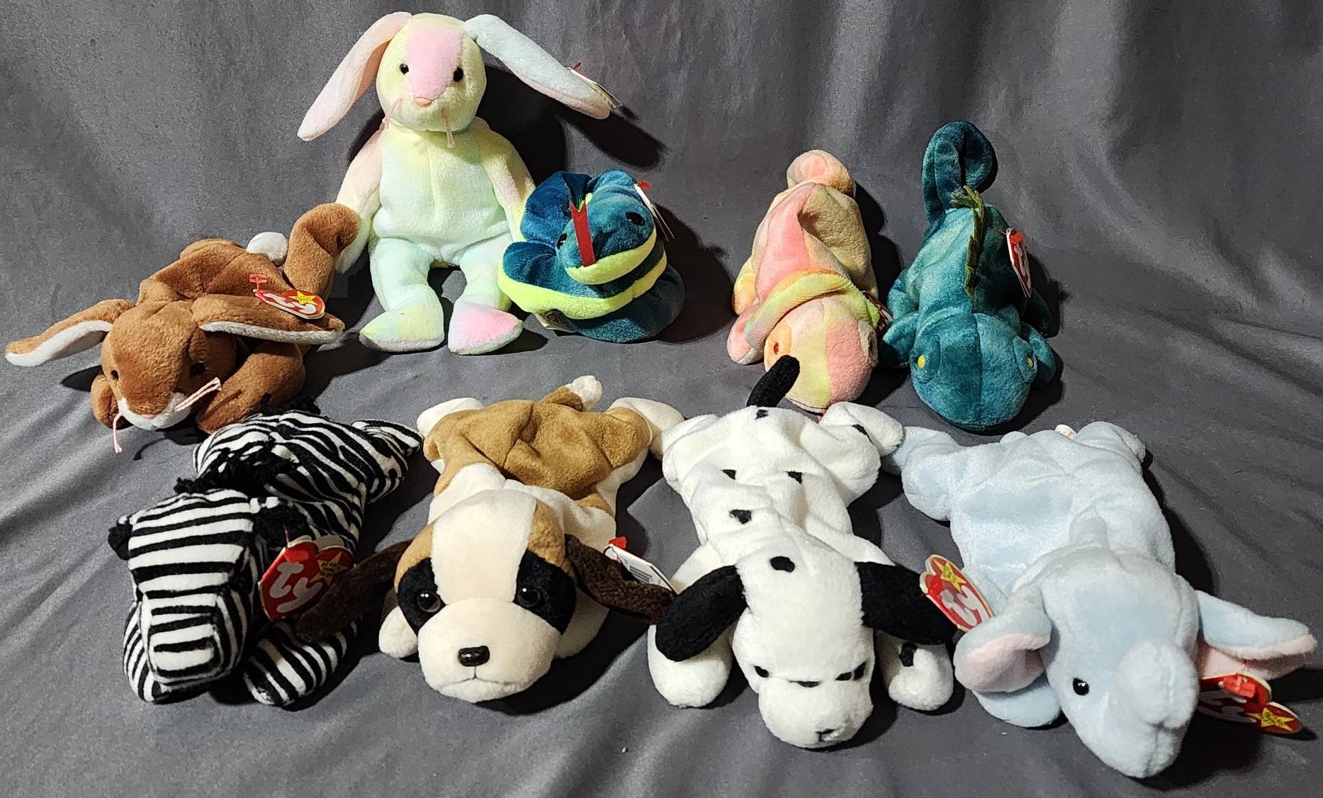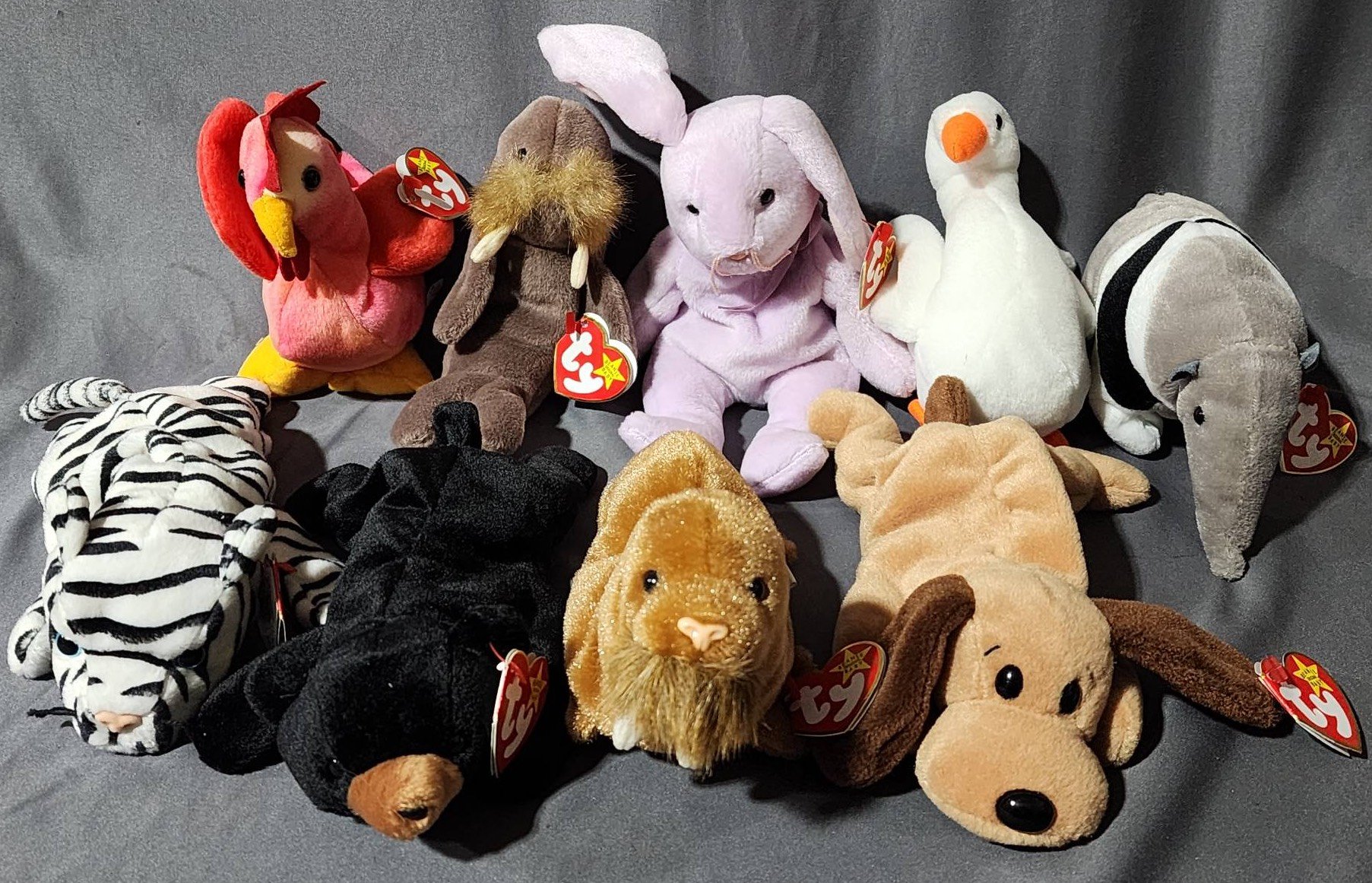 30053 9 TY Beanie Babies Plush Toys With Tags, Various Characters and STYles