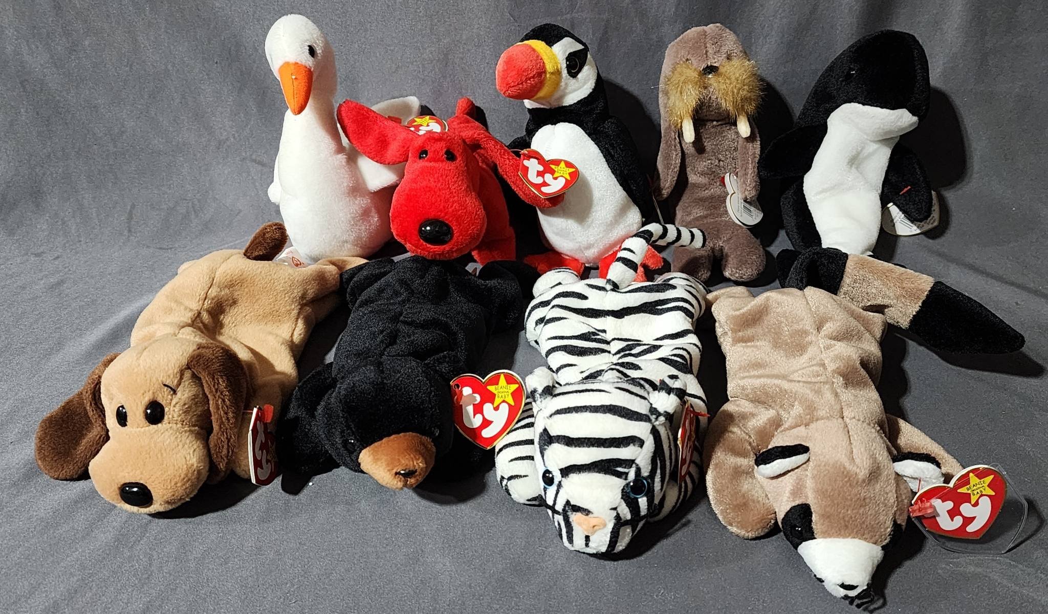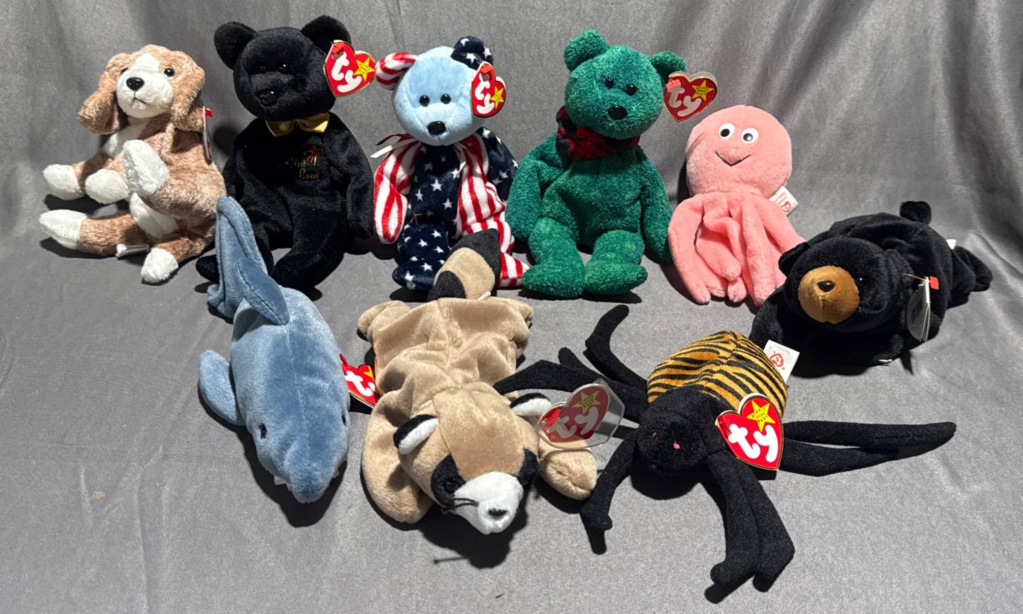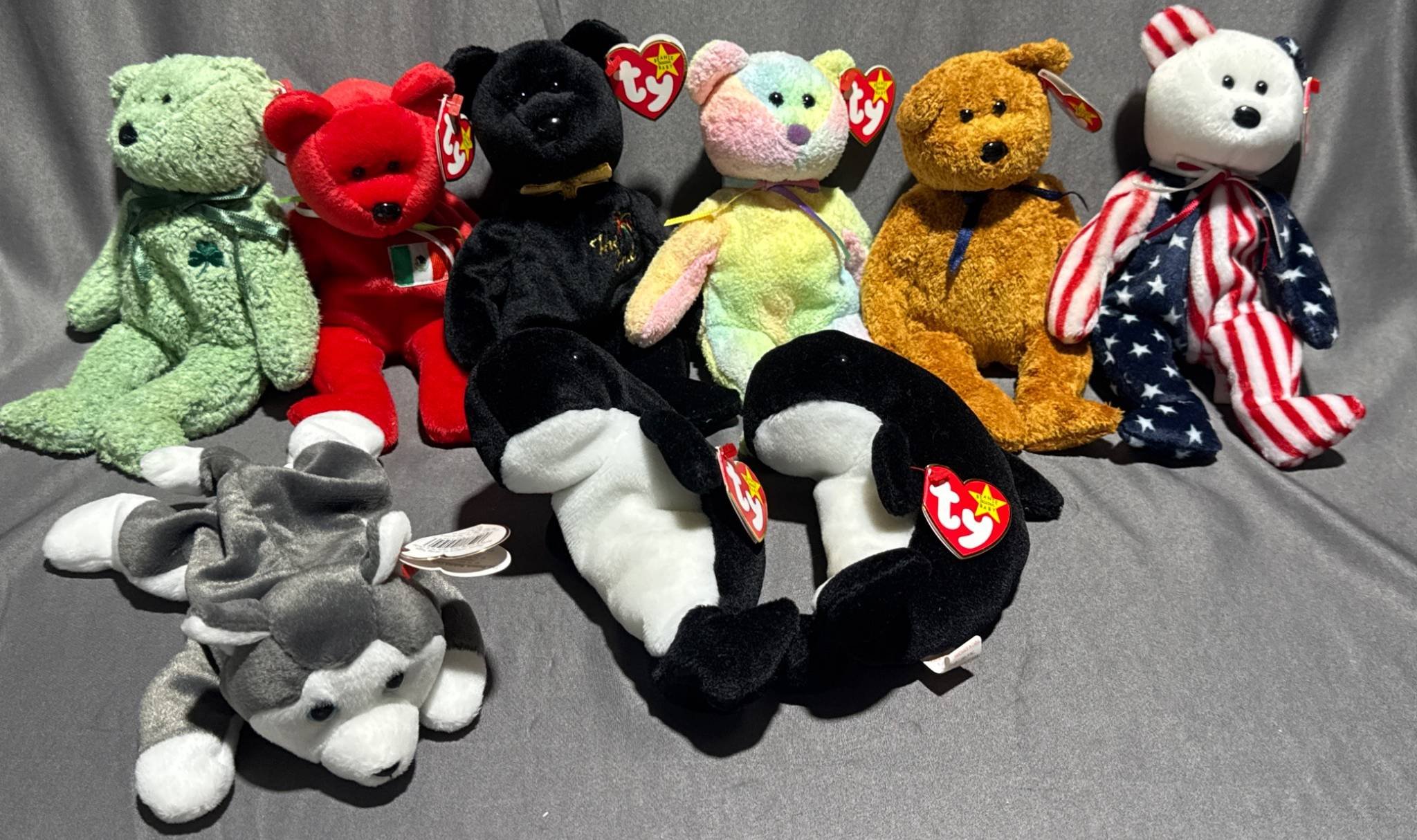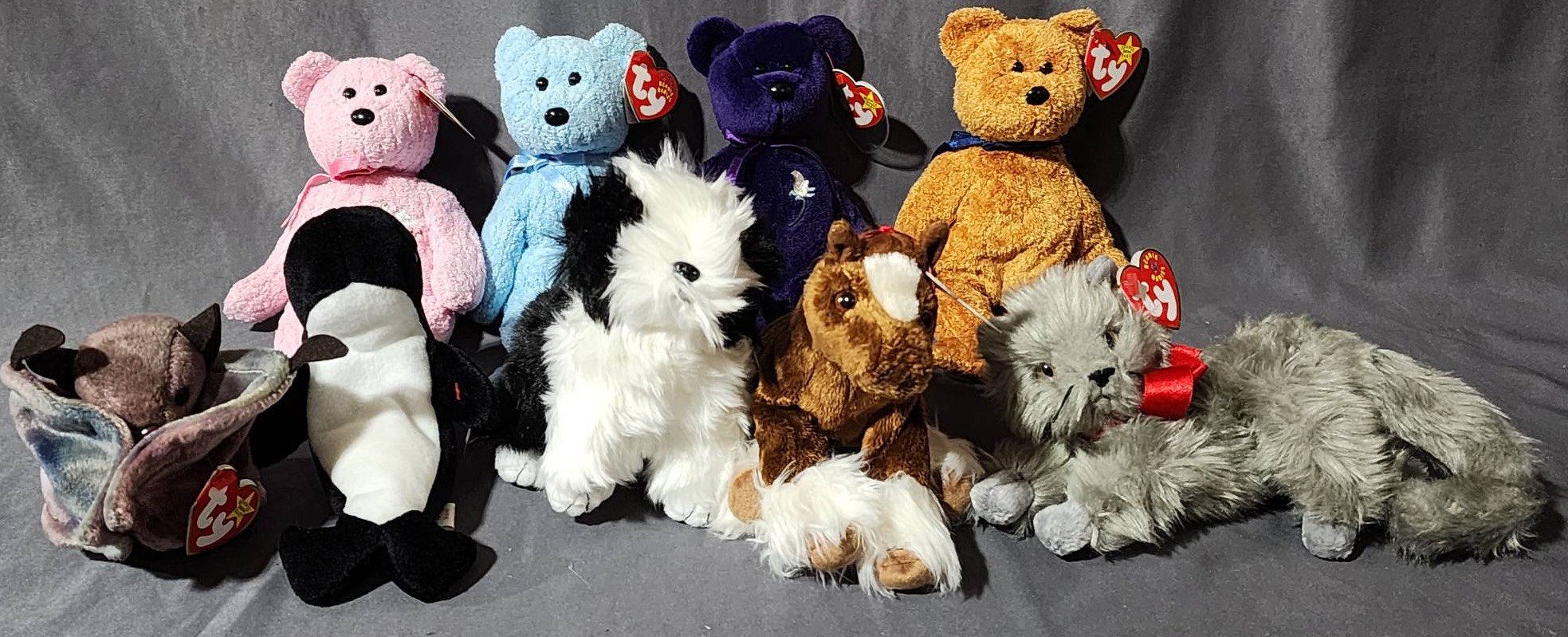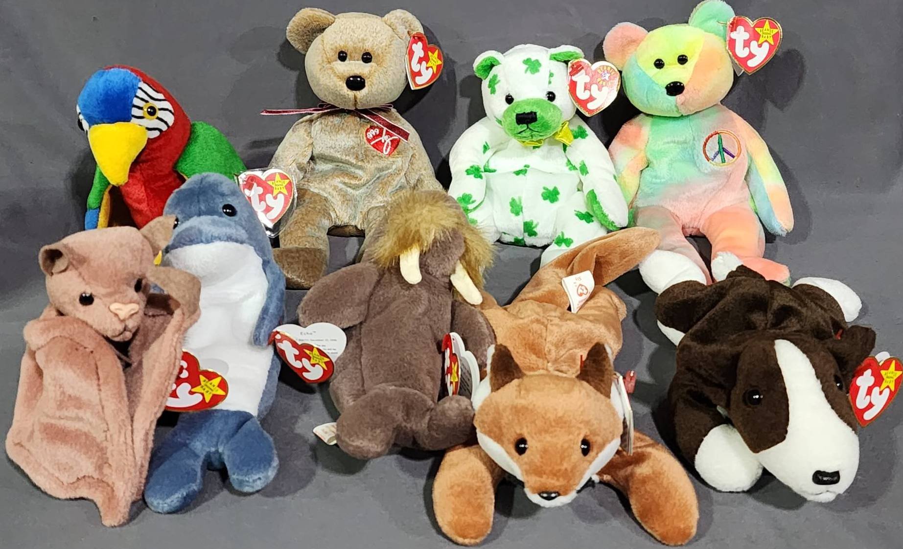 30053 9 TY Beanie Babies Plush Toys With Tags, Various Characters and STYles