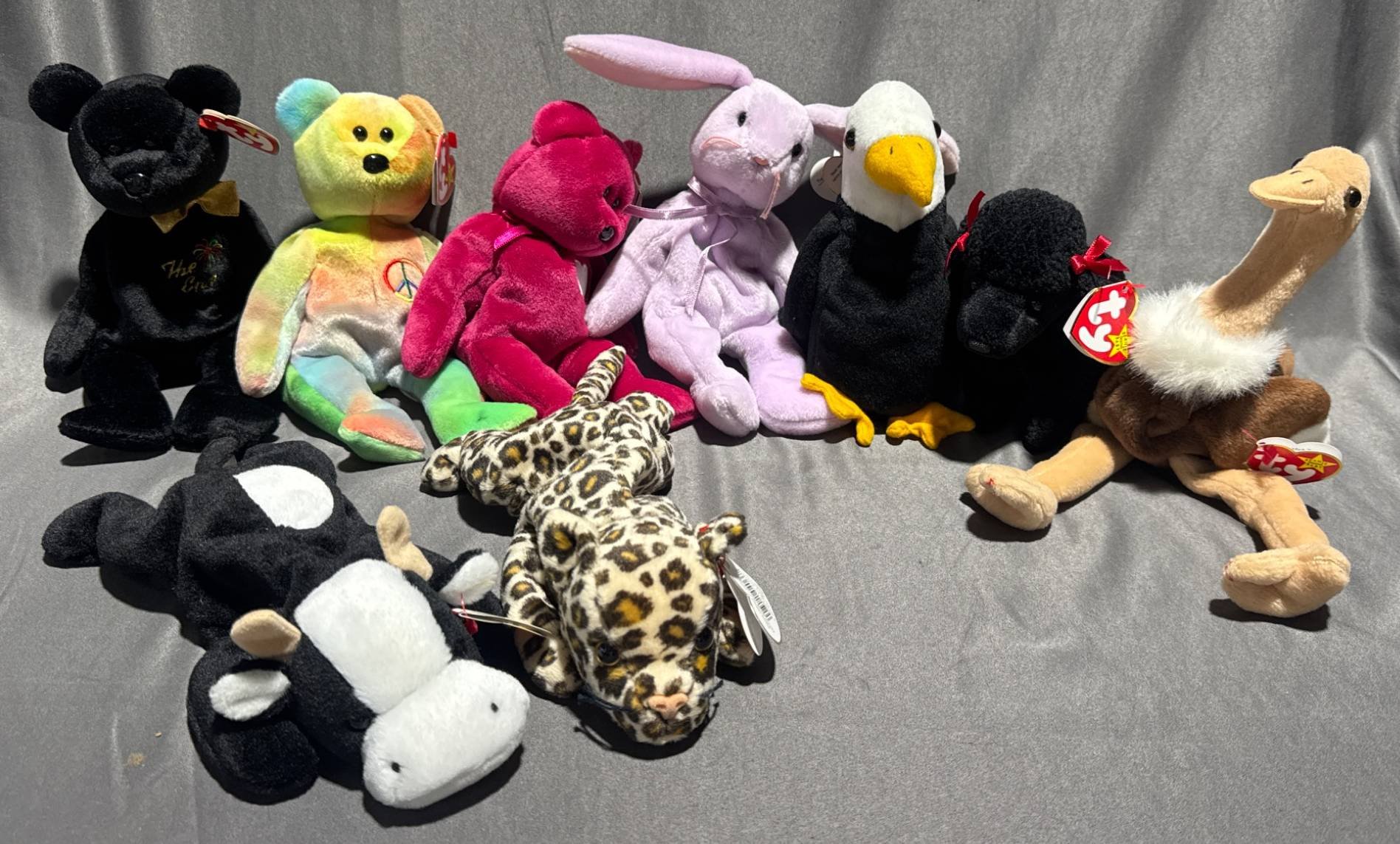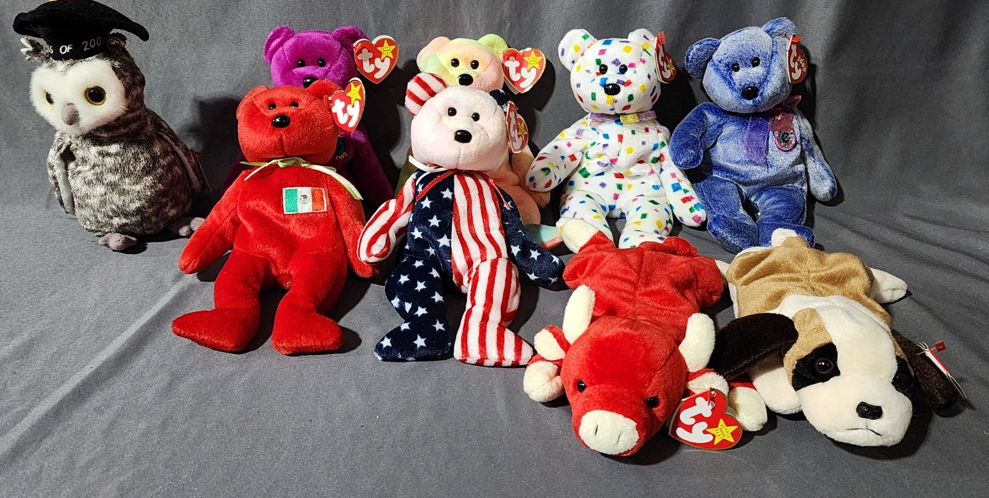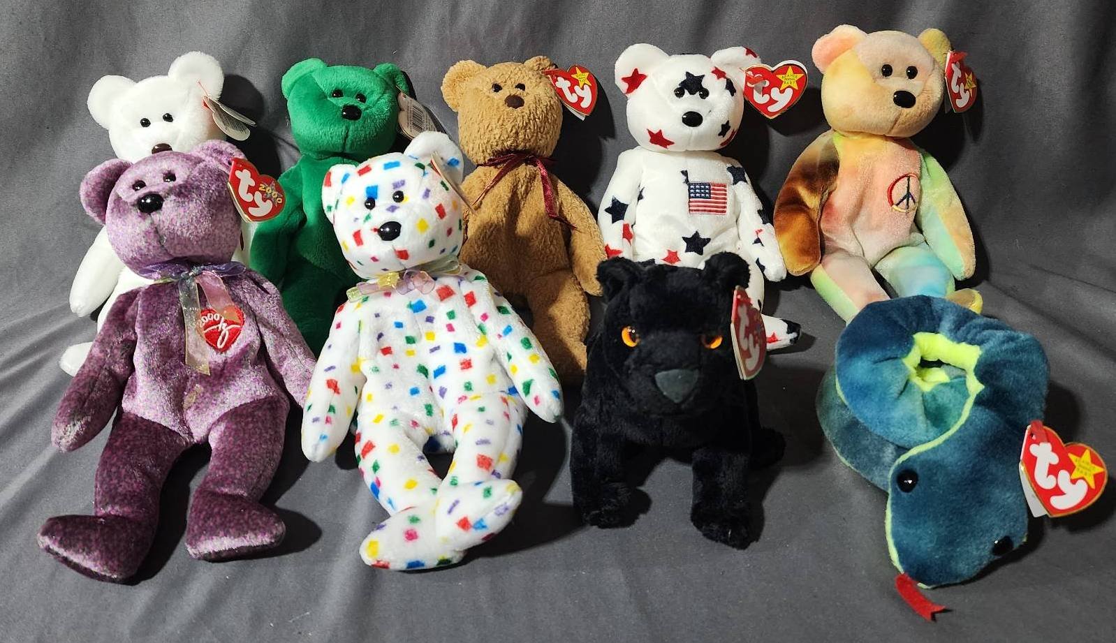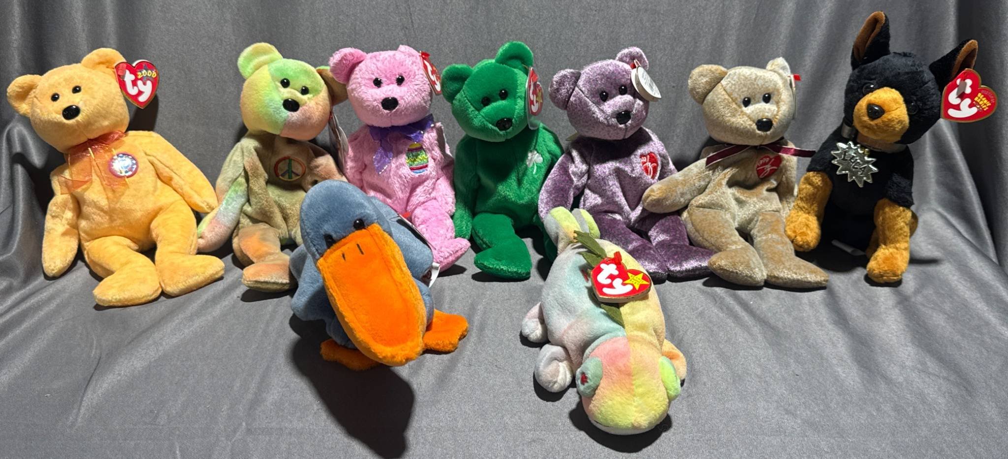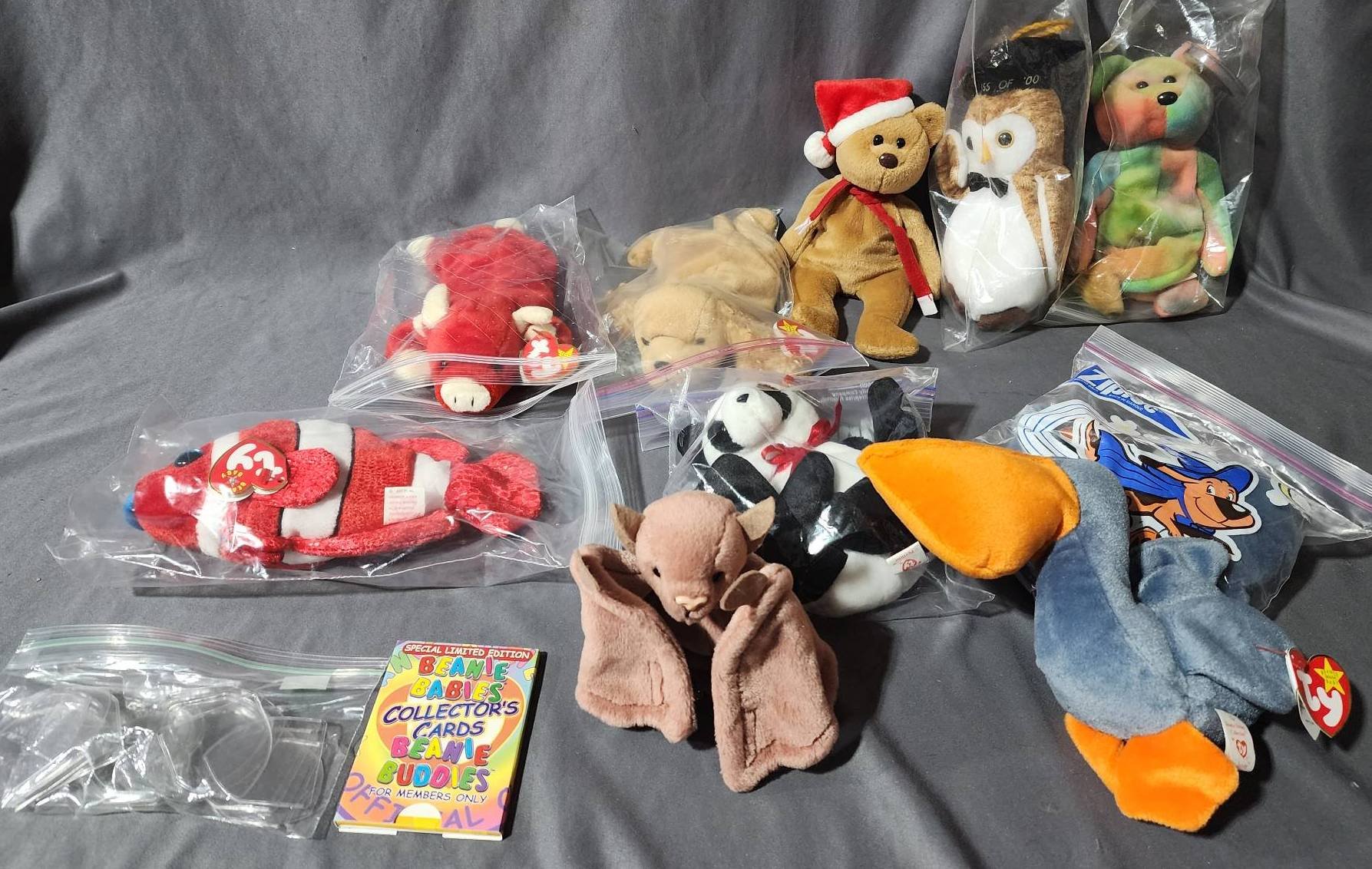 30053 9 TY Beanie Babies Plush Toys With Tags, Various Characters and STYles