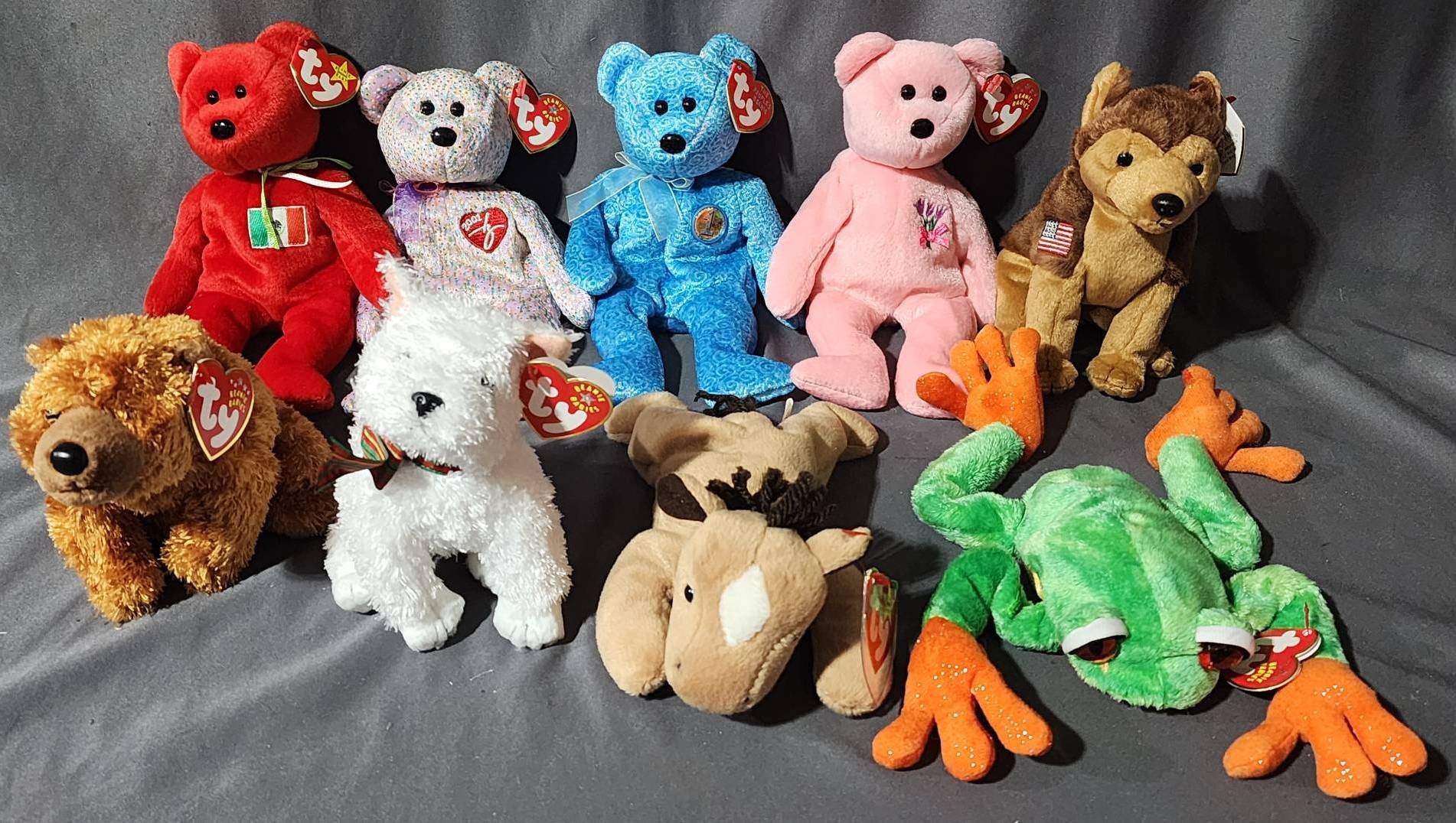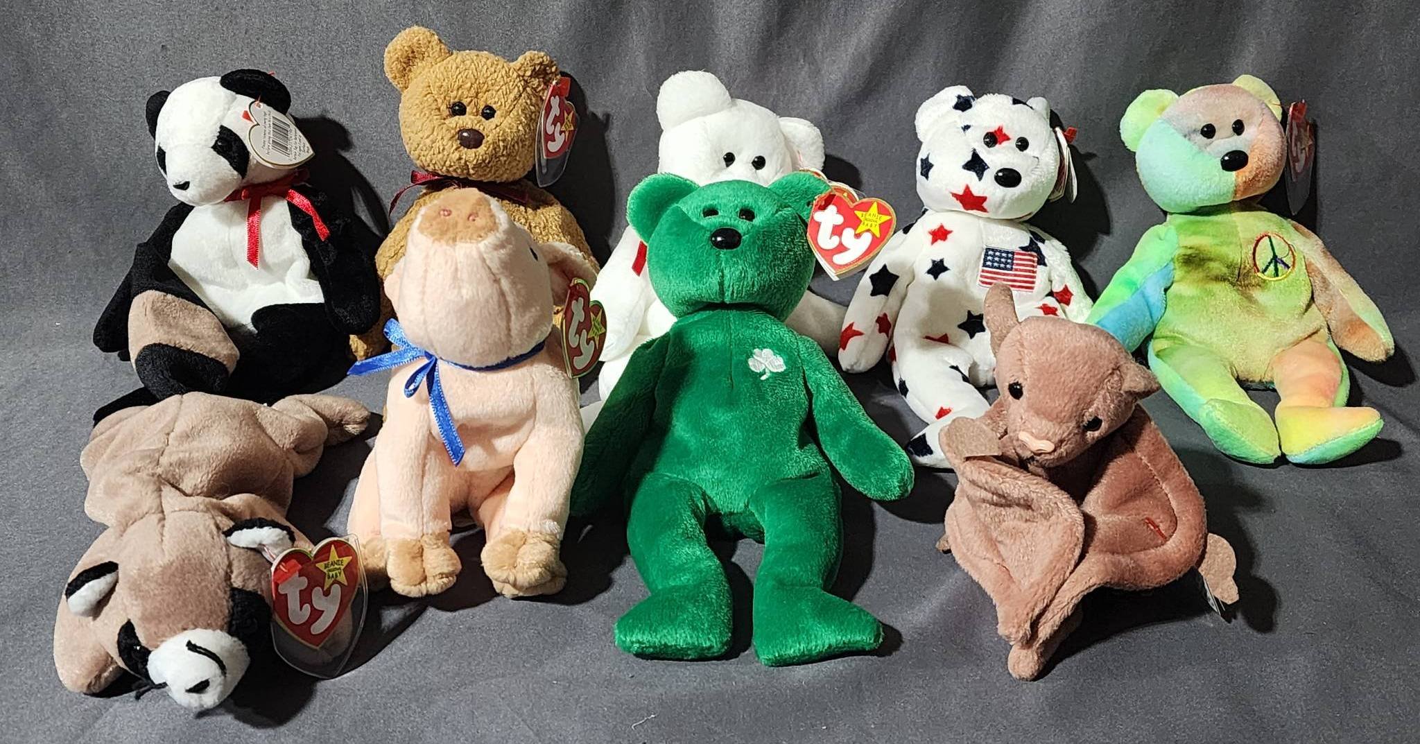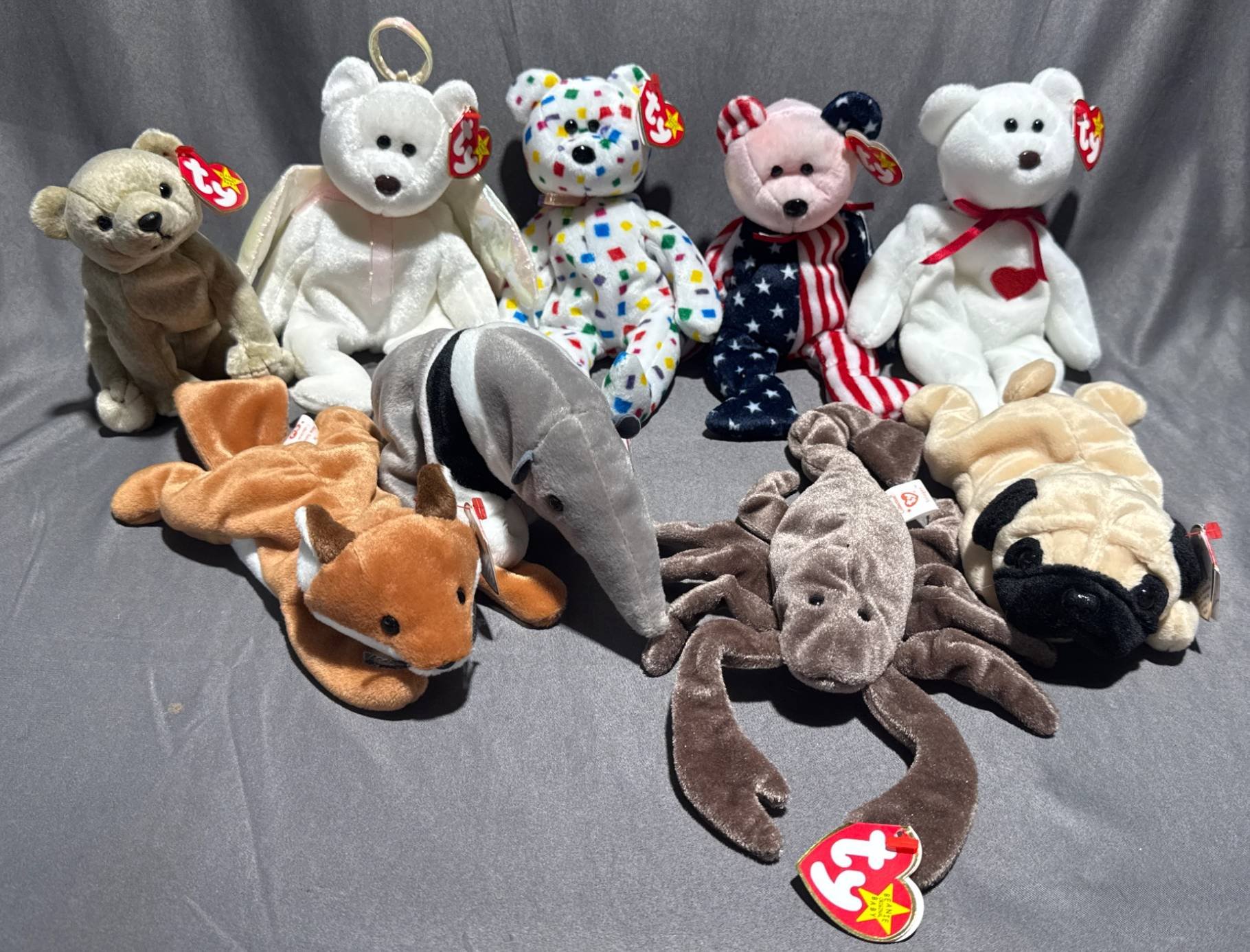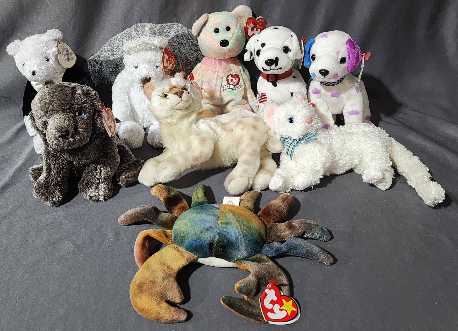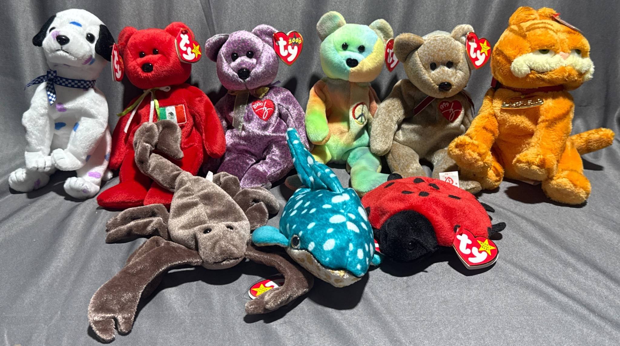 30053 9 TY Beanie Babies Plush Toys With Tags, Various Characters and STYles