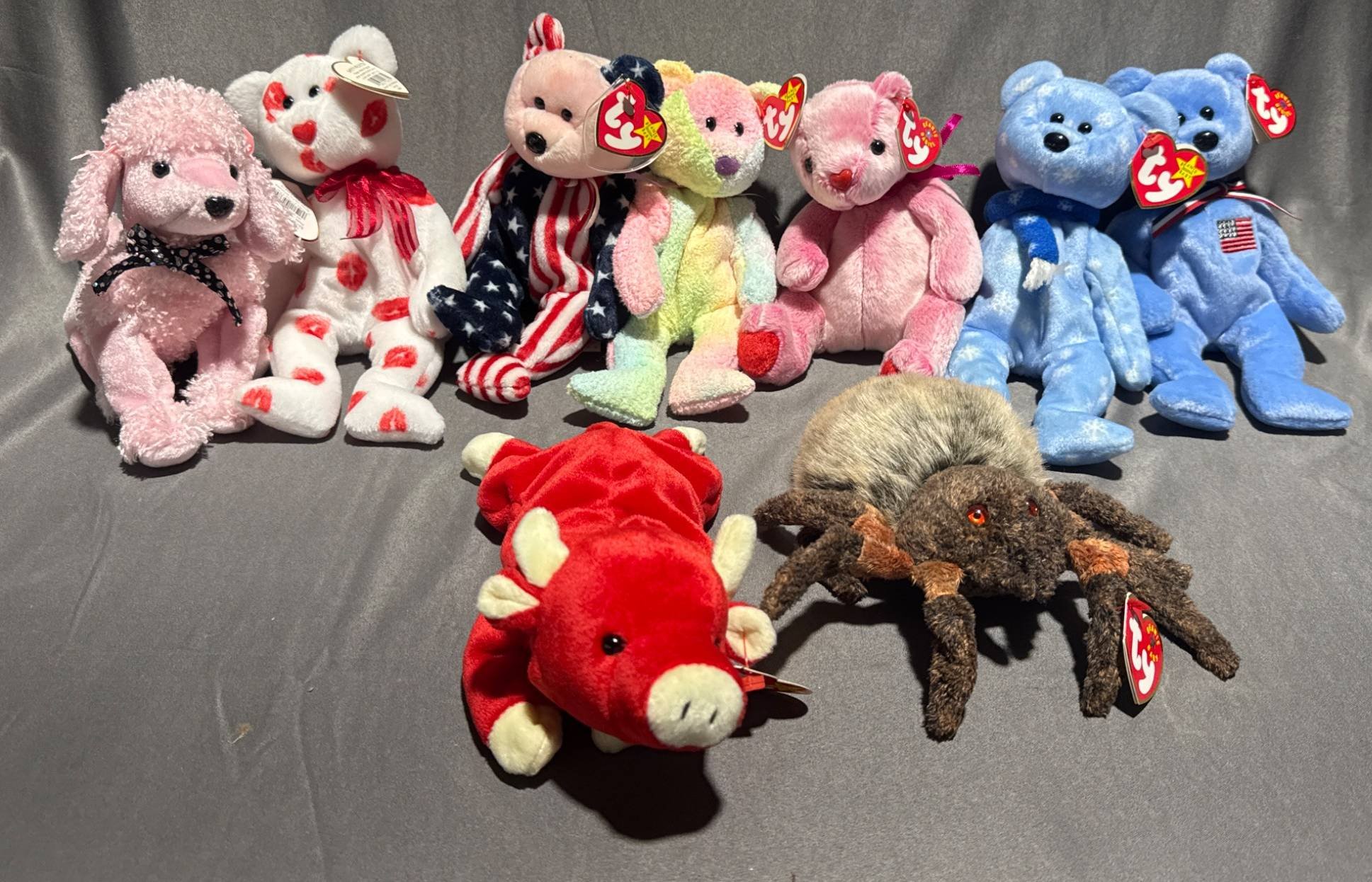 30031 9 TY Beanie Babies Plush Toys Inc. Bears, Poodle, Bull & Spider 3” – 8”