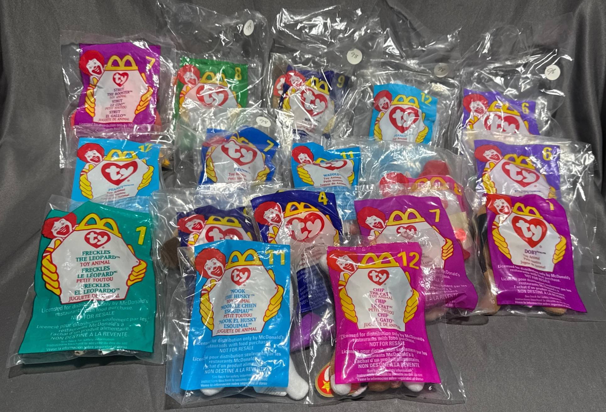 30035 17 McDonald’s Happy Meals TY Beanie Babies in Original Packaging, 3” x 5”