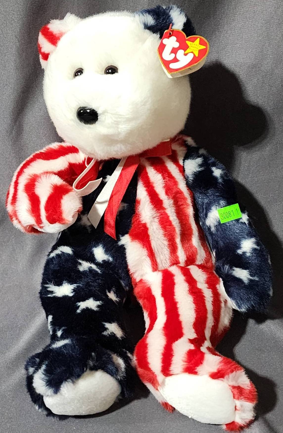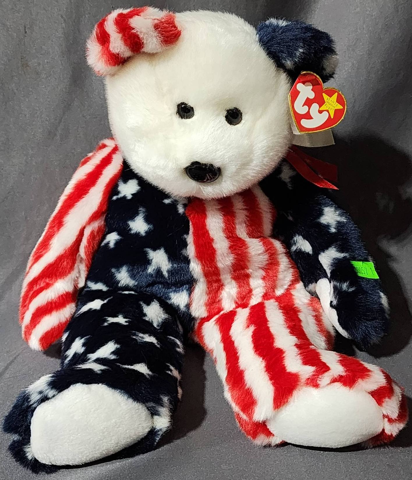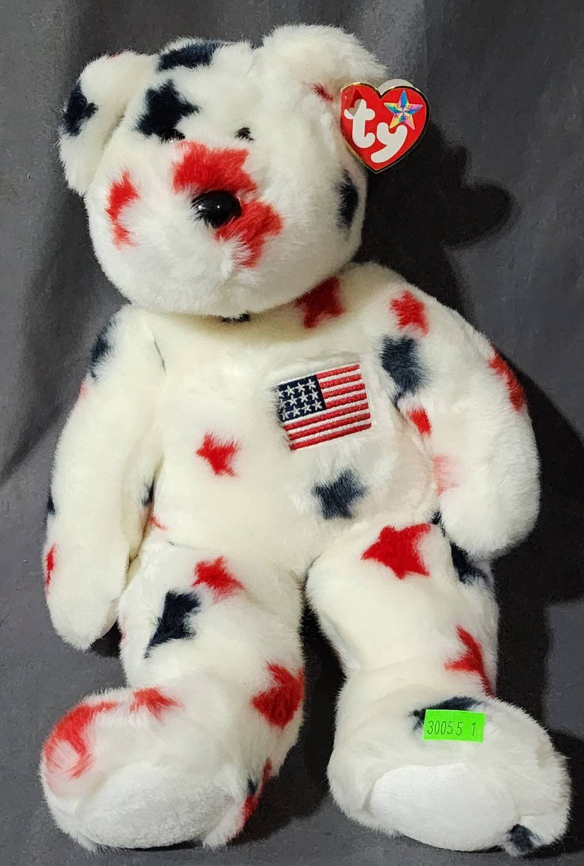 30057 TY Beanie Buddy Plush Bear ‘Spangle’ with American Flag Pattern, 13?
