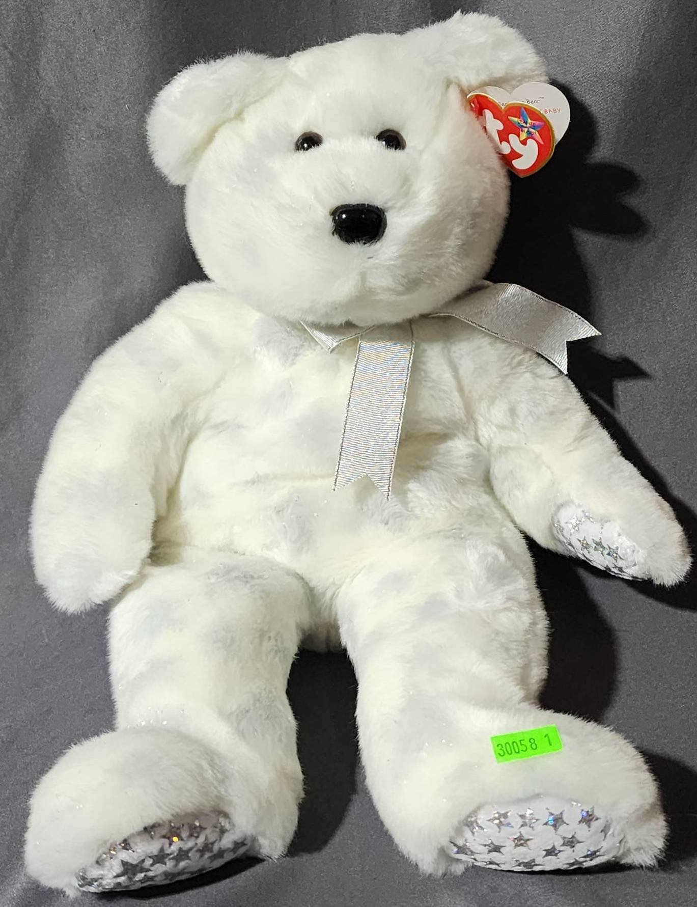 30058 TY Beanie ‘The Beginning Bear” Plush White Bear with Star Accents, 13?