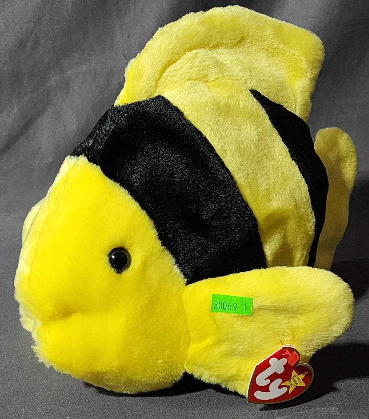 30069 TY Beanie Buddy Plush “Bubbles” Yellow & Black Fish, 8?