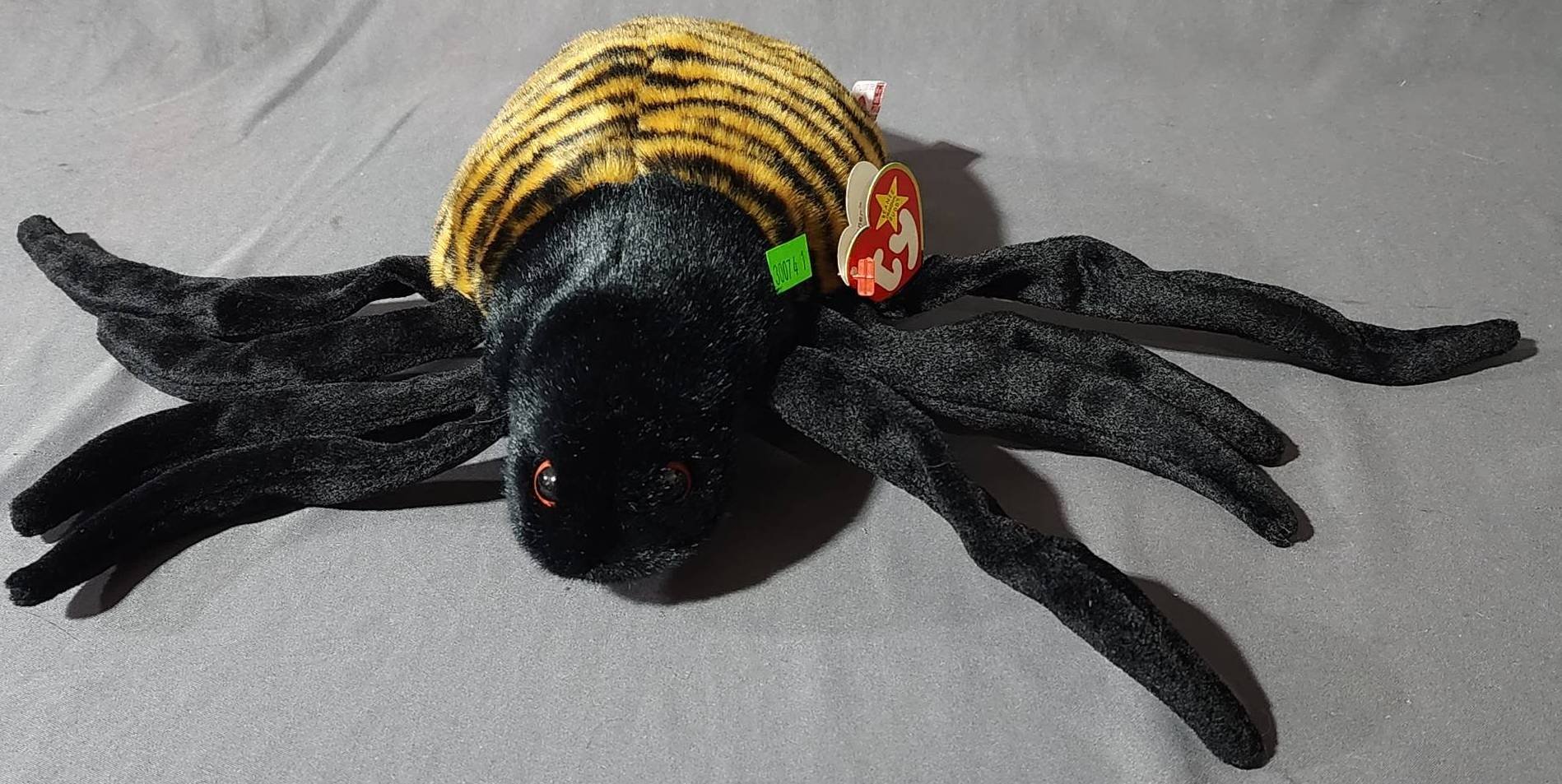 30074 TY Beanie Buddy Plush Spinner Spider with 9? Tiger-Striped Body