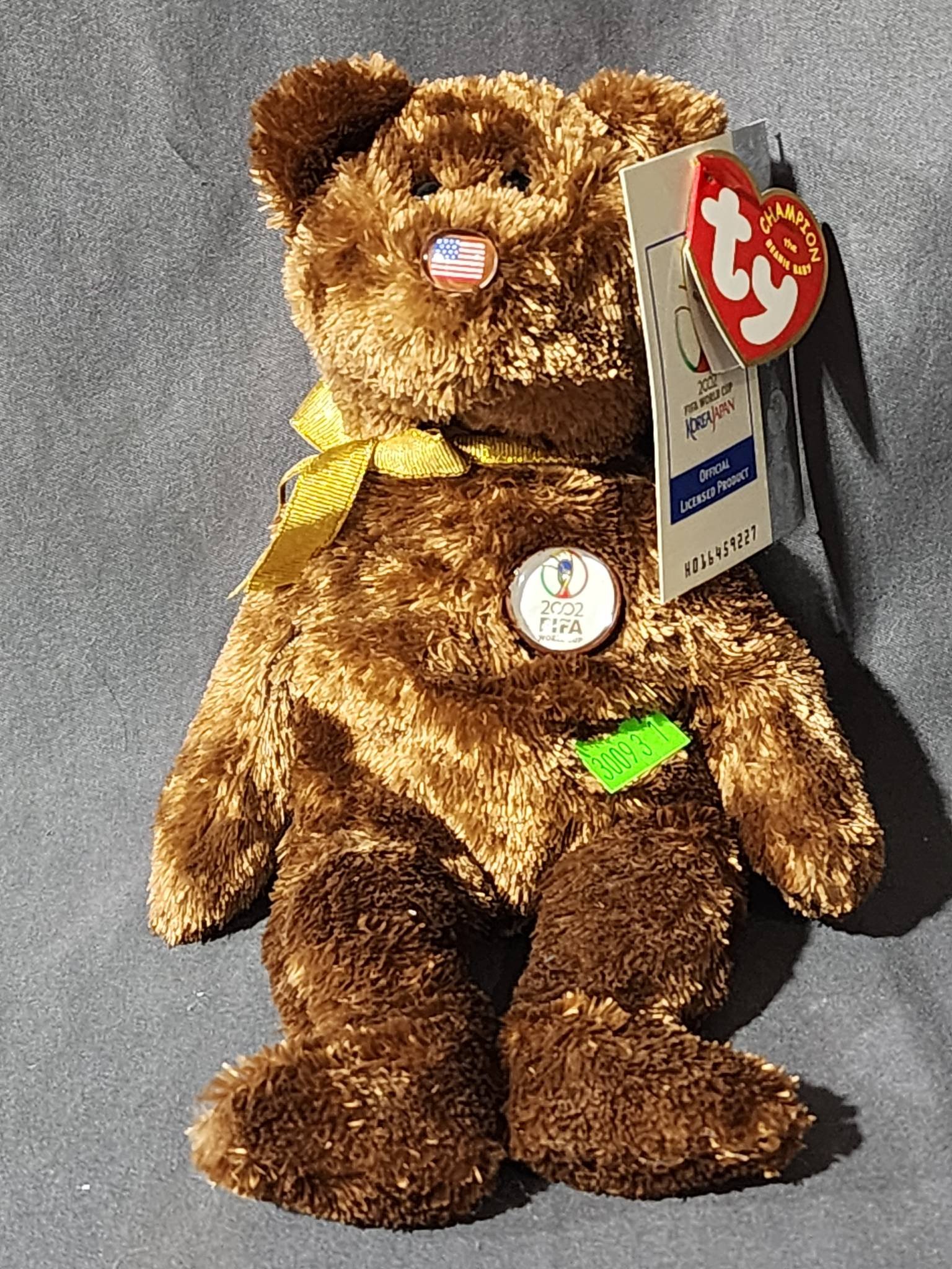 30093 TY Beanie Baby Champion Bear with 2002 FIFA World Cup Tag, 8?