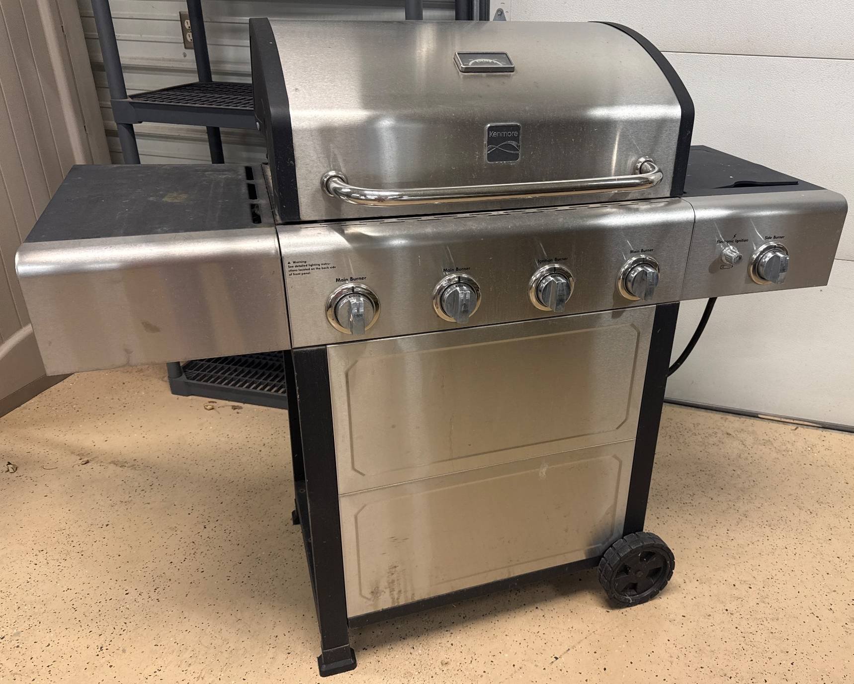 100 Kenmore Stainless Steel 4-Burner Gas Grill with Side Burner, Rust, Empty Propane Tank Included