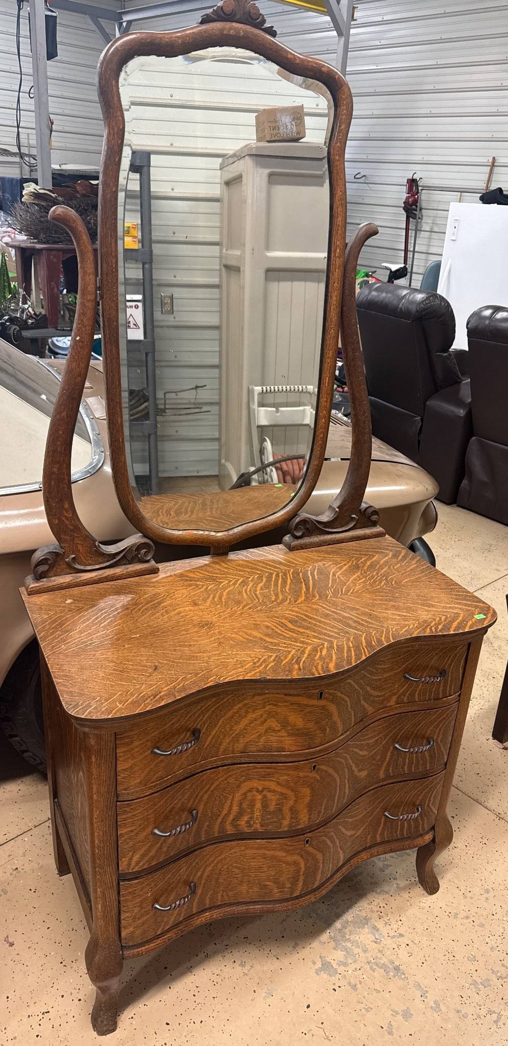 105 Tiger Oak Dresser With Swivel Mirror and 3 Drawers, 71? x 19? x 34?