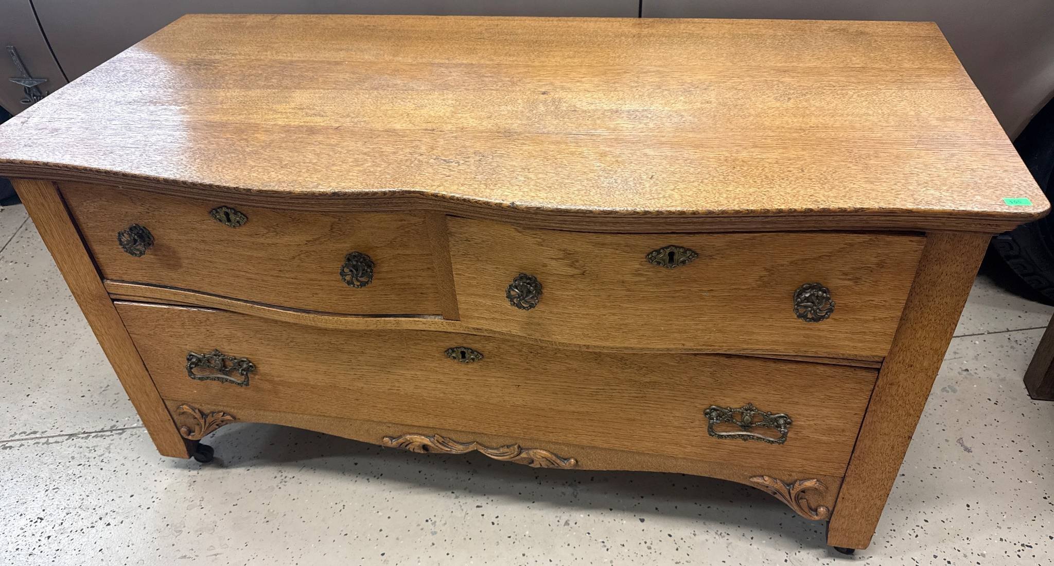 106 Carved Low Chest with 3 Drawers and Brass Hardware, 45”x21”x23”