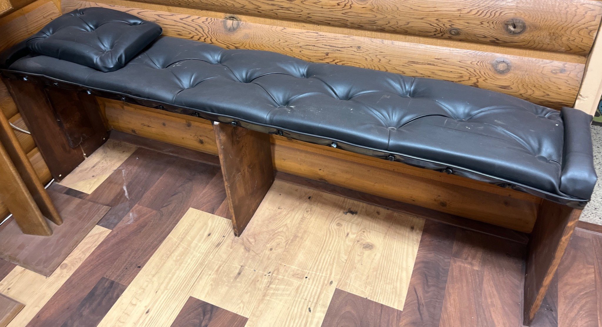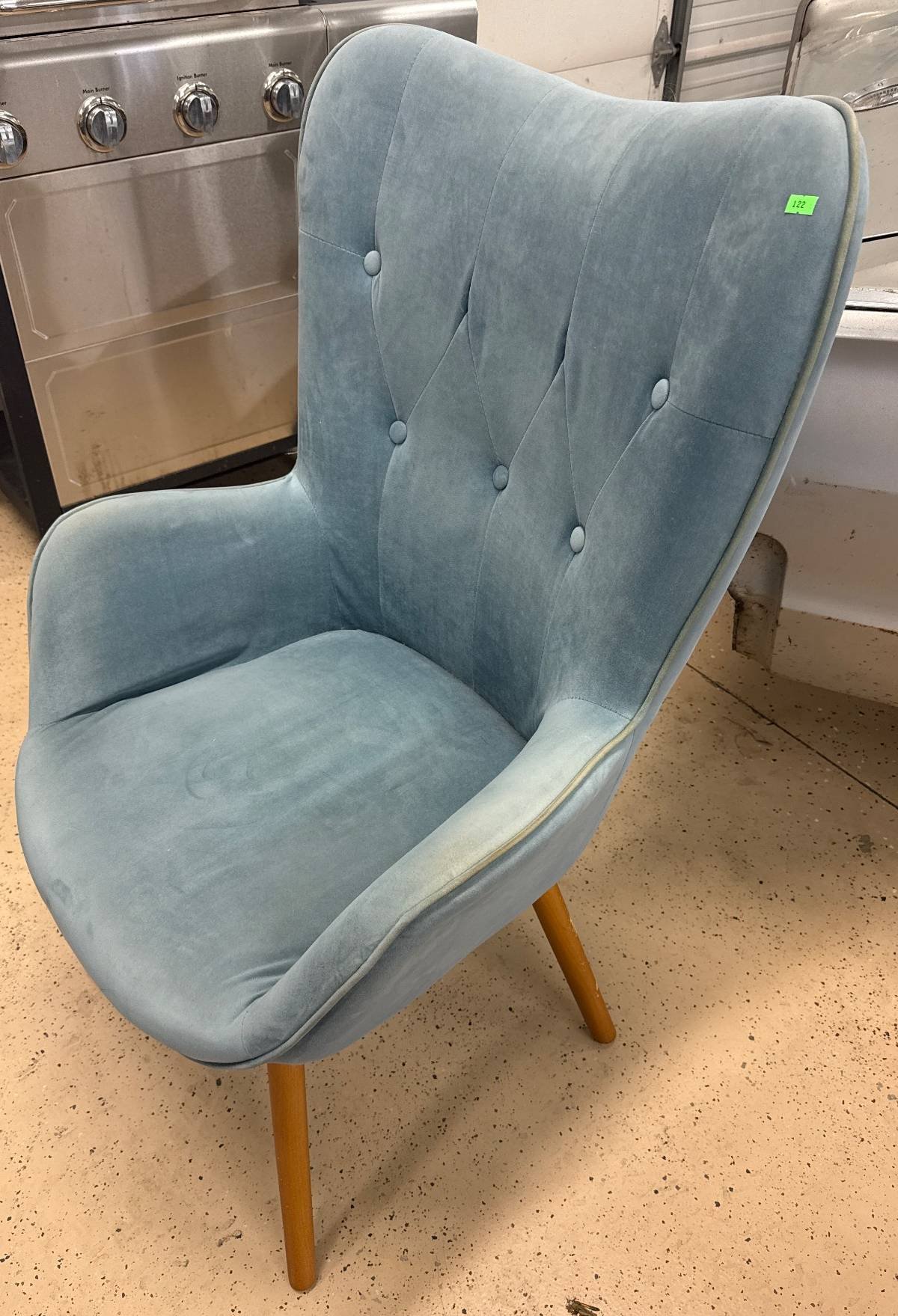122 Upholstered Chair with Button-Tufted Backrest and Tapered Legs 41? x 27? x 35?, Worn and Legs are damage