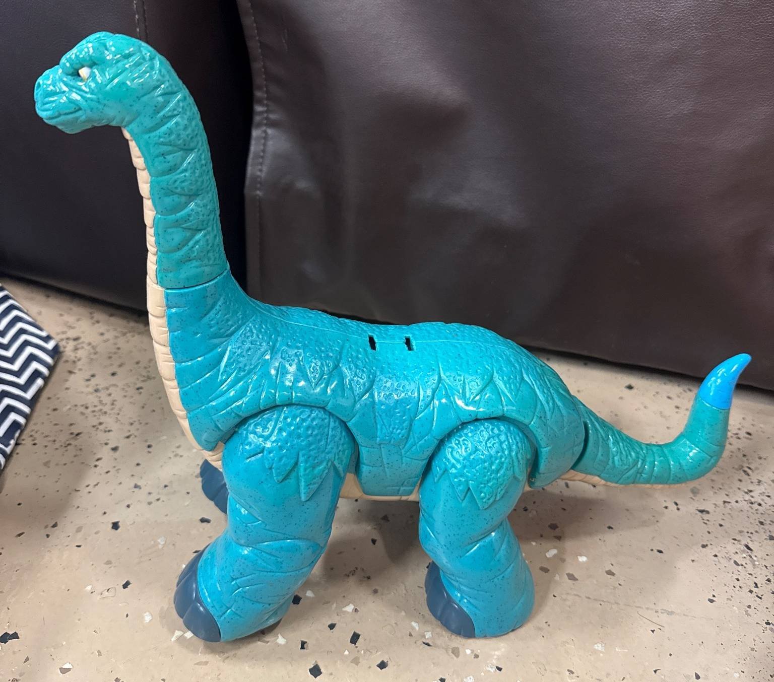 133 Blue Plastic Dinosaur Figurine with Articulated Limbs, 11” Tall
