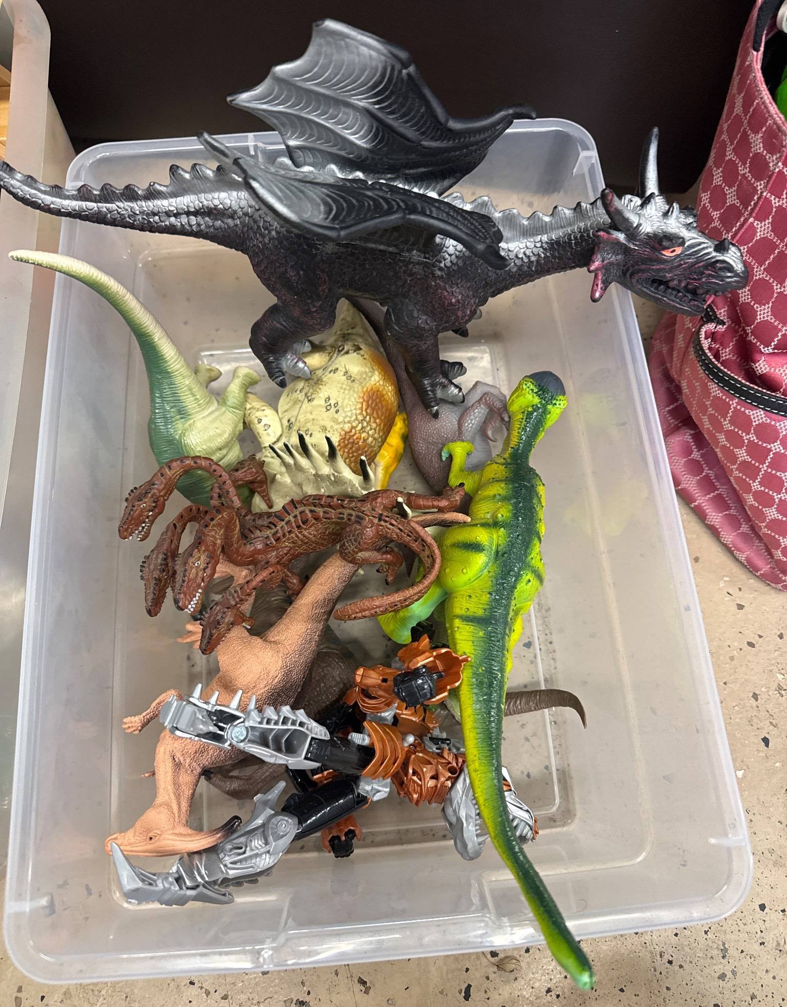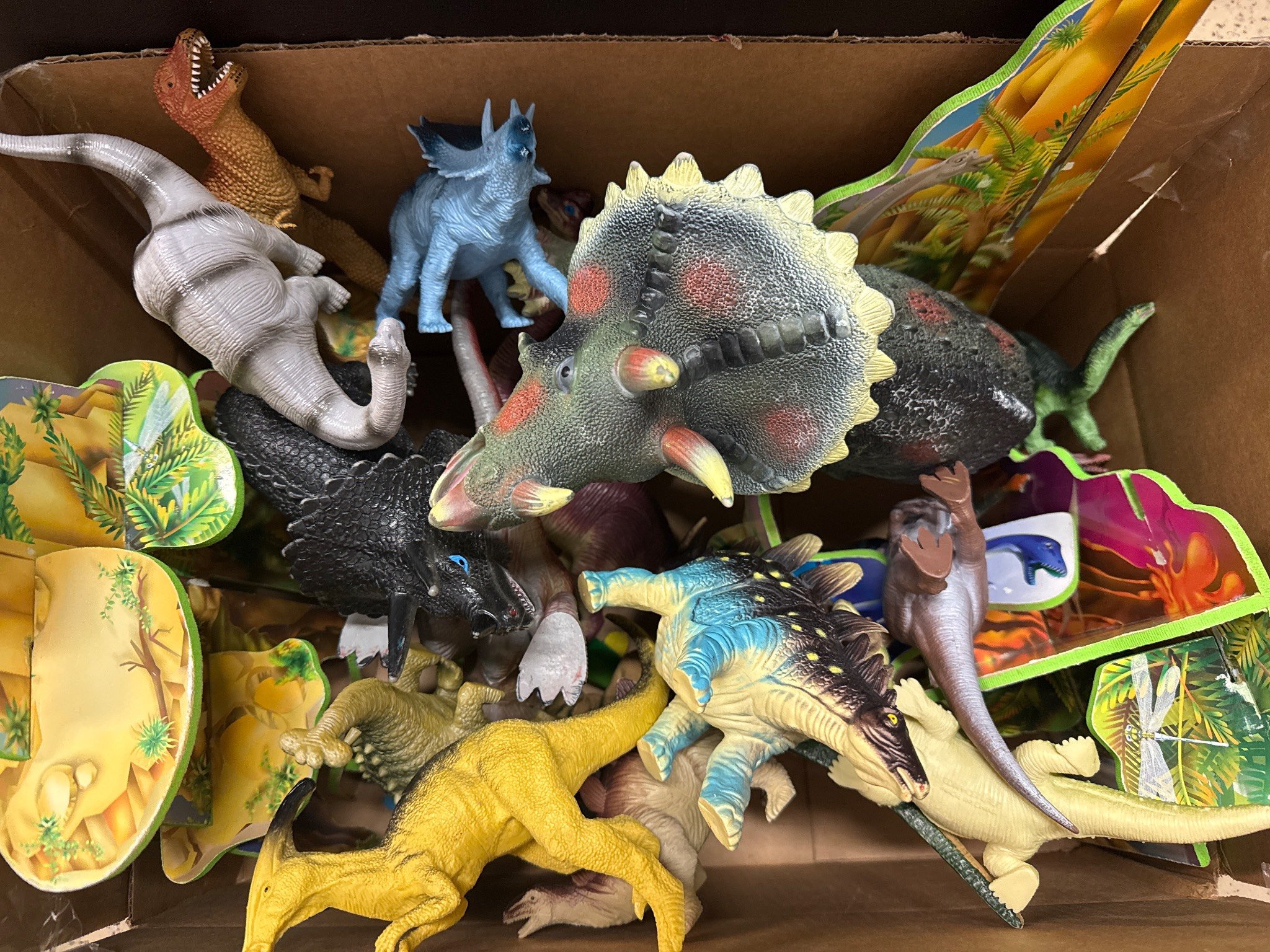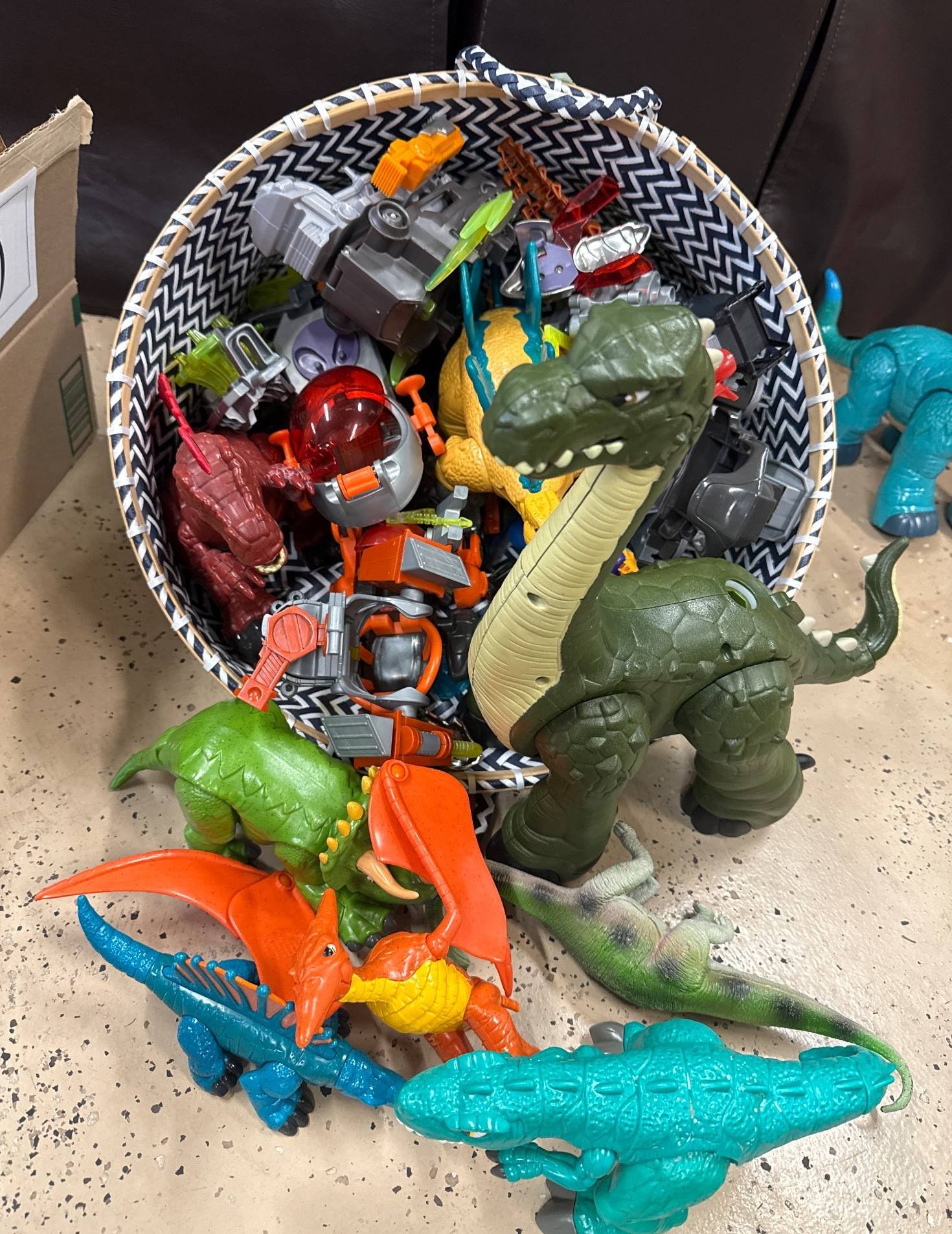 134 Plastic Dinosaur Toys with Action Features in Storage Basket