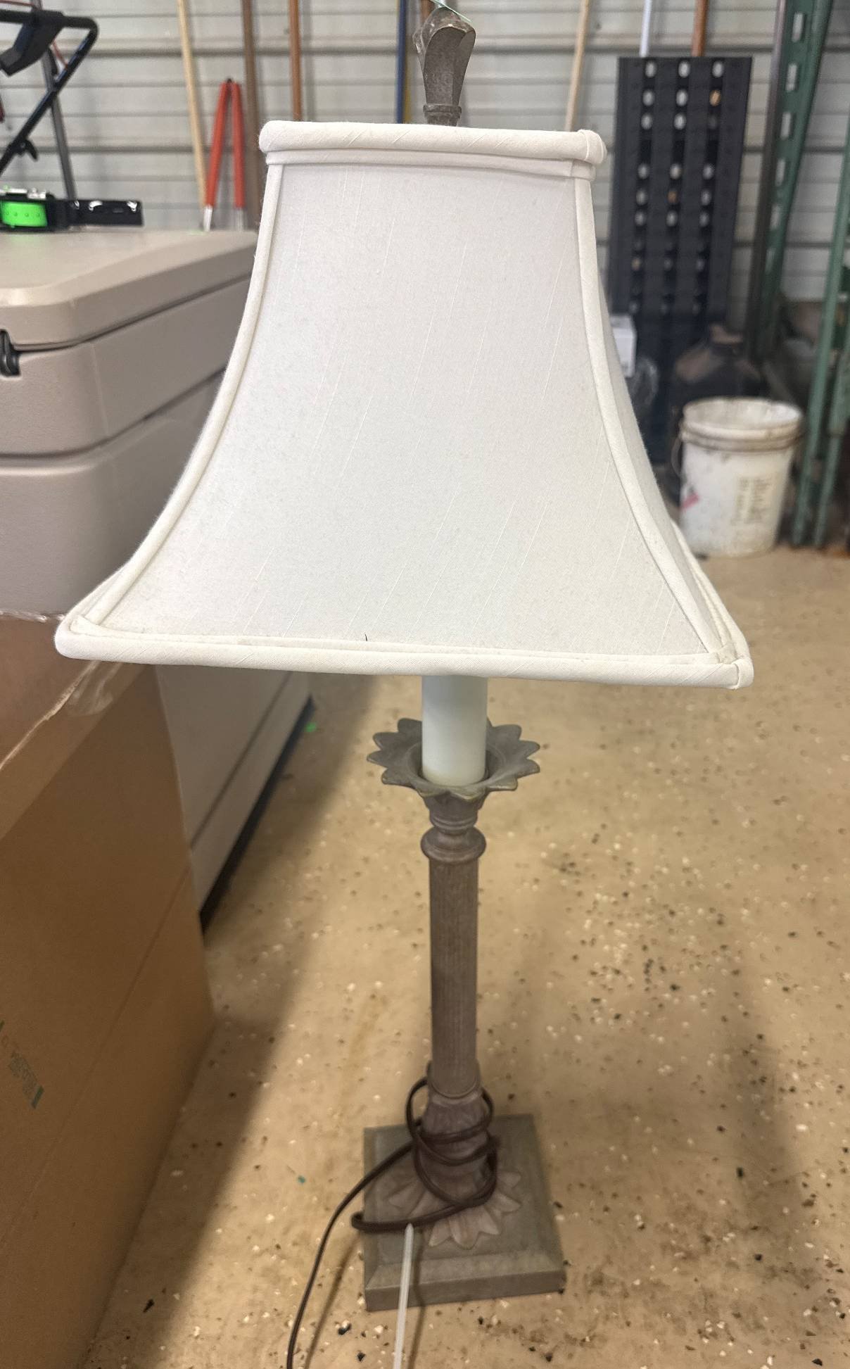 801 2 Metal Table Lamps with Brown Shades, 37” Tall