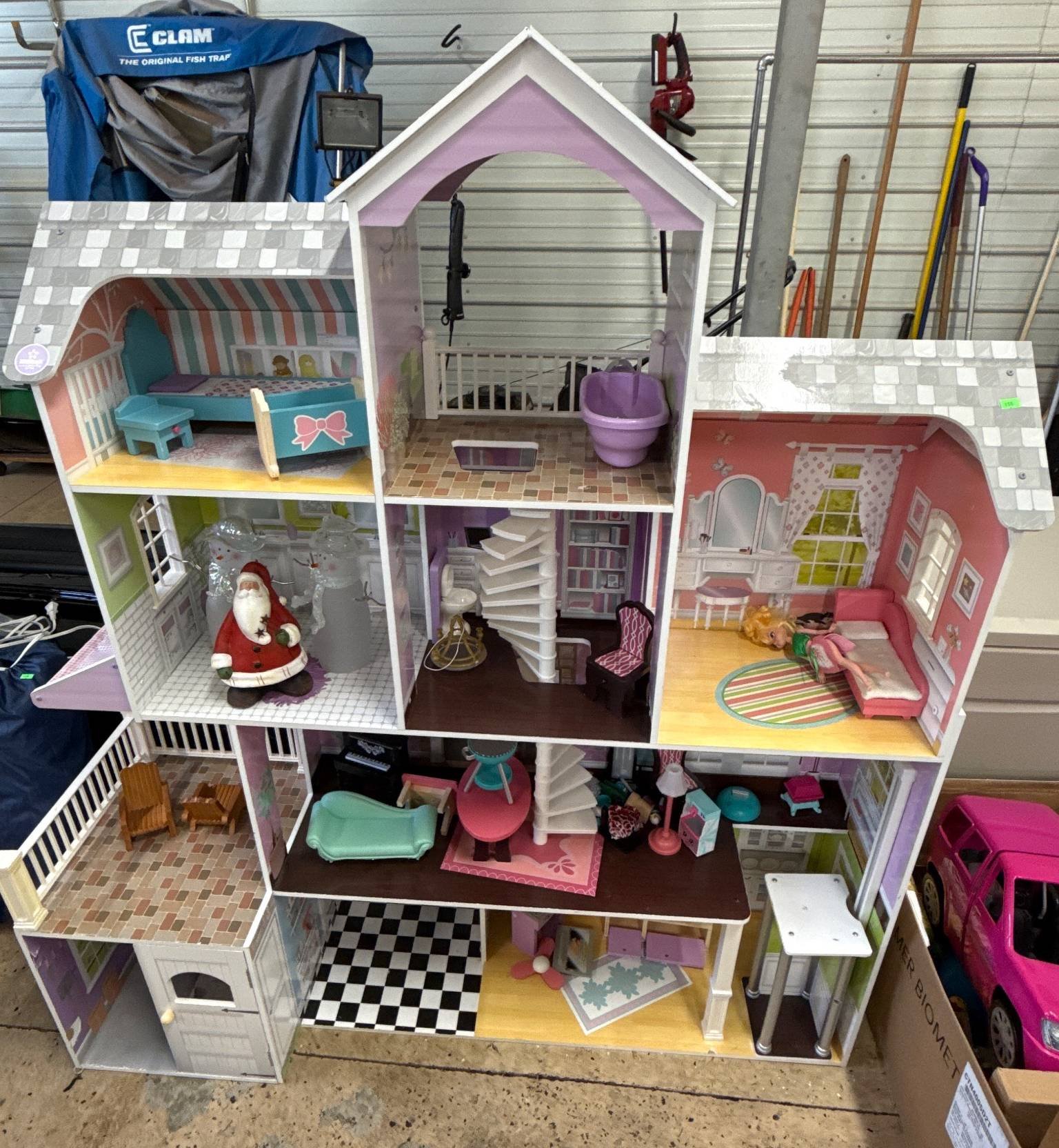 155 Multistory Dollhouse with Accessories and Spiral Stairs, 59”x53”x13”
