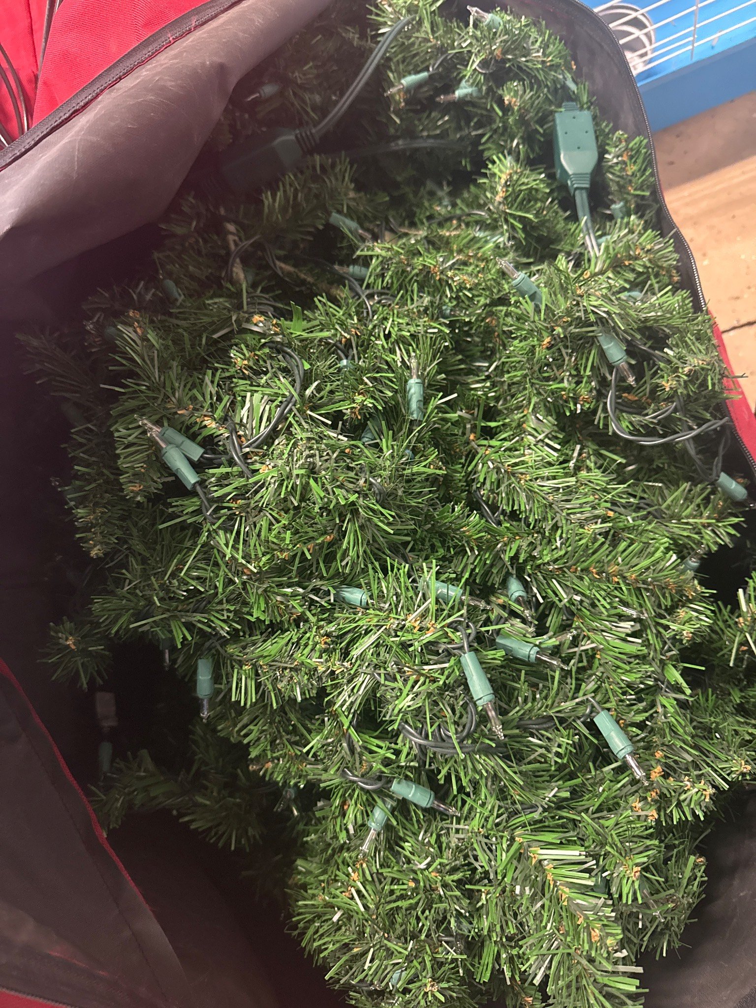 157 Artificial Christmas Tree with Integrated String Lights and Storage Bag, Unknown if Complete, Untested