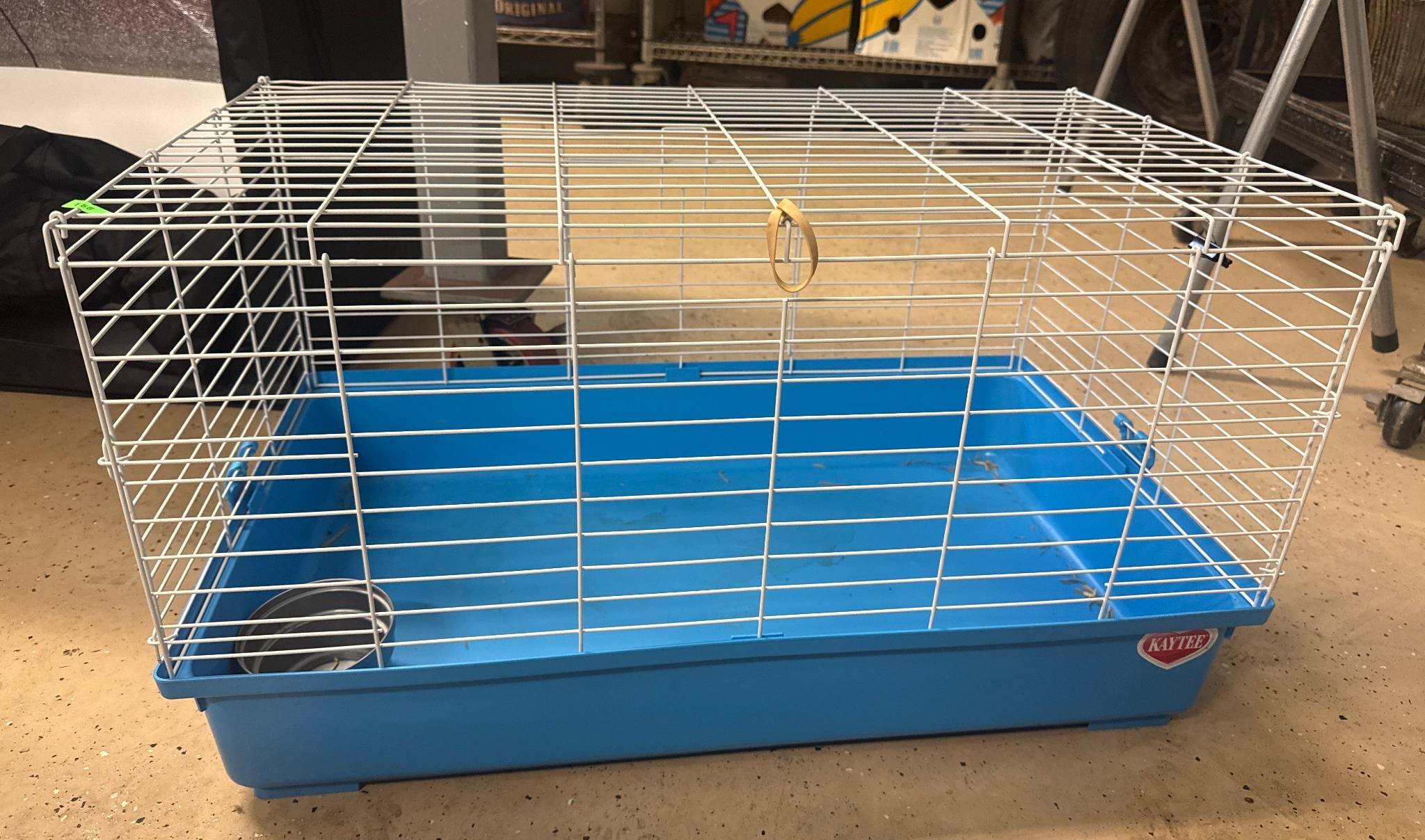 158 Wire Cage with Blue Plastic Base and Feeding Bowl, 17? x 17? x 29.5?