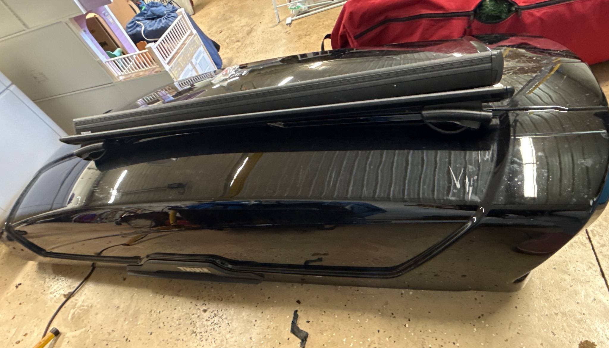 160 Thule Cargo Hauler with Roof Rack Bars, Black, 56”x32”x18”
