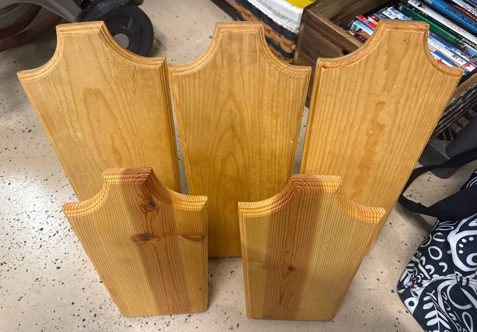 174 5 Shaped Wood Boards and 1 Frame, 2 Fabric Bags