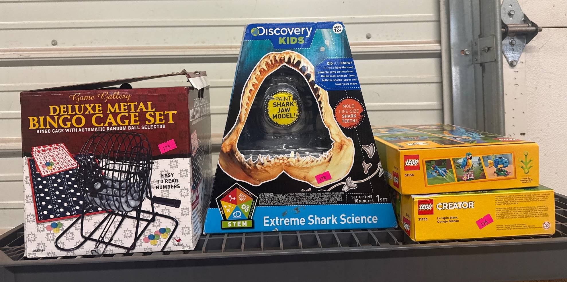 175 Bingo Cage, Shark Science Kit, & 2 LEGO Creators, Unknown if Complete