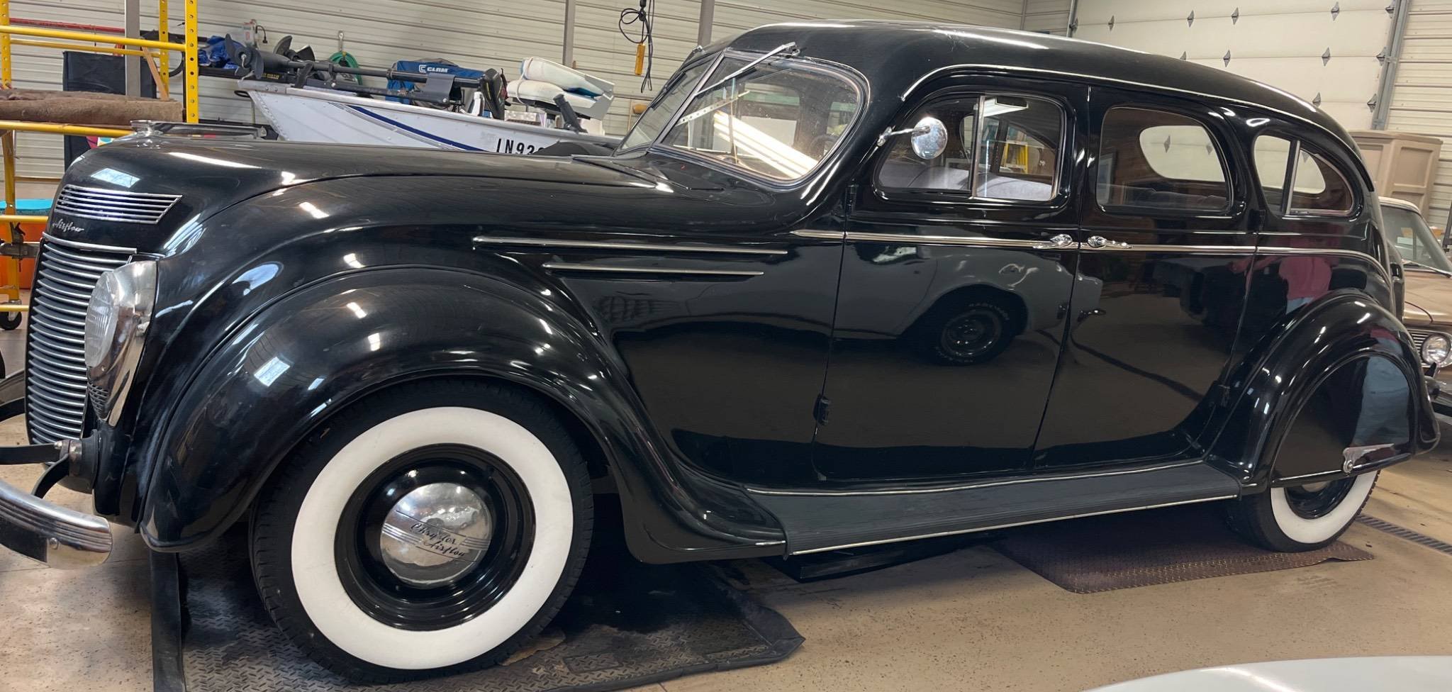 3 1937 Chrysler Airflow Sedan Black with Inline-6 Engine, Runs & Drives, Shows 34,921 Miles. Has 1937 Chrysler Shop Manual & Title. Ding in Door, Paint Wear