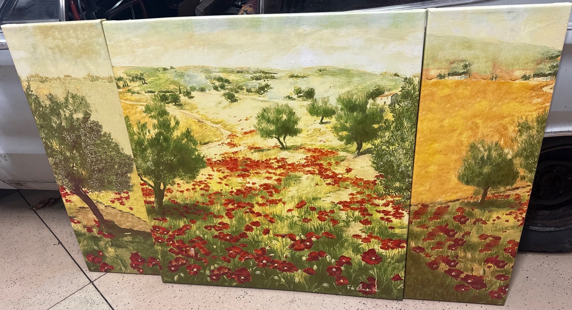 1020 Framed Print of Rural Landscape with Signature R.L. Banceaner, 44×29
