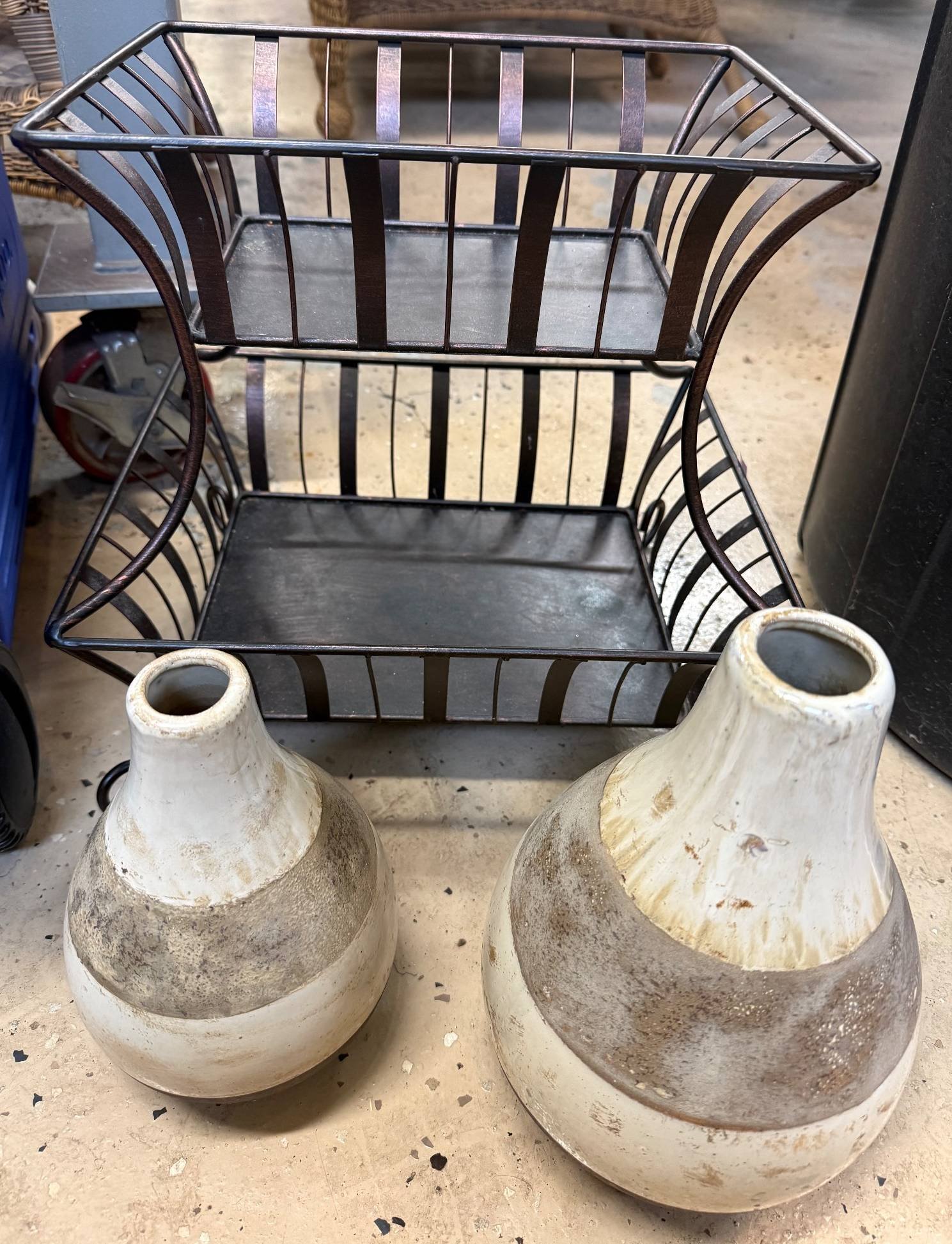 1010 Painted Vase with Decorative Handles, 14 1/2”