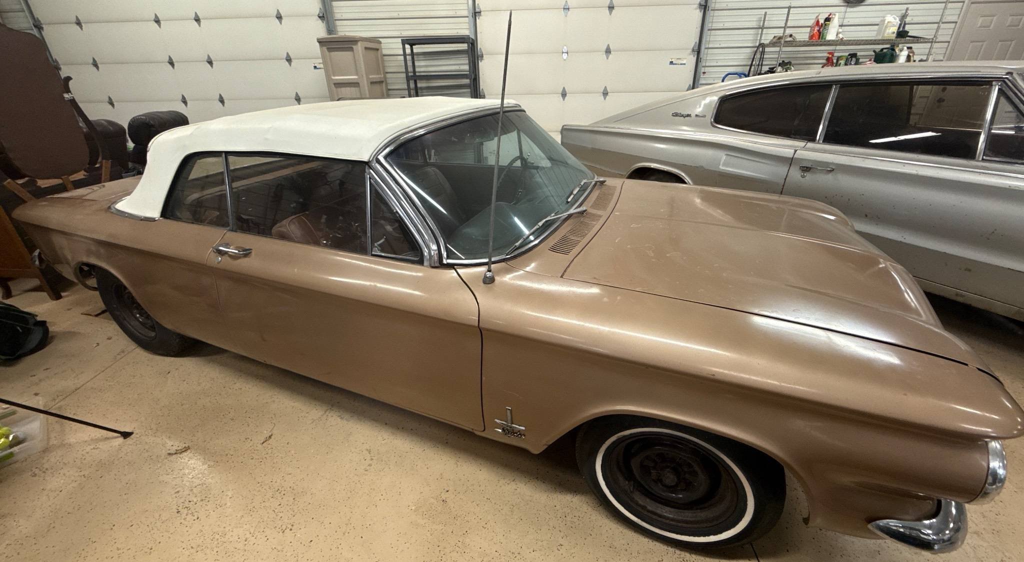 4 1963 Chevrolet Corvair 967 Monza Spyder Convertible with Turbo Air 6 Engine, Runs but has an oil gasket leak which sprays oil when started - needs fixed, odometer reads 52957 miles, wear on seats and trunk, has title, VIN 30967W219126 - A $25 TITLE FEE WILL BE ADDED TO THE WINNING INVOICE