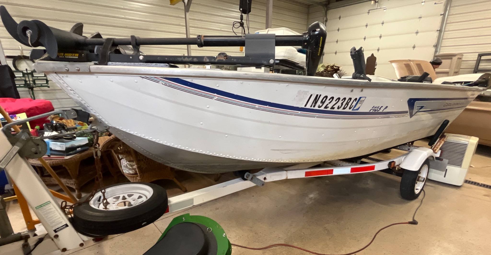 5 1994 Grumman Fishing Boat with Johnson Outboard Motor, Runs and Drives, Model J15ELEOD and 1995 Shore Lander Trailer, BOAT VIN OMCS7601E494, TRAILER VIN1MDD0BN12SE685755, trailer has title ONLY - A $25 TITLE FEE WILL BE ADDED TO THE WINNING INVOICE