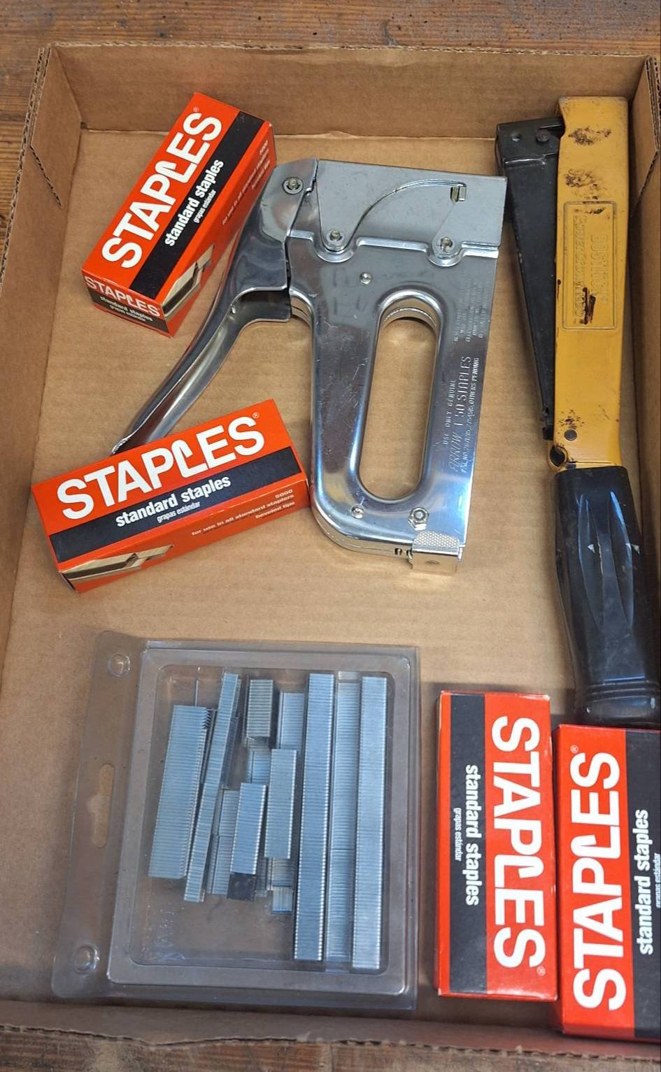 595 Makita Heat Gun, Stanley Electric Staple Gun, Manual Staple Gun, and Indoor Wire 25 Ft