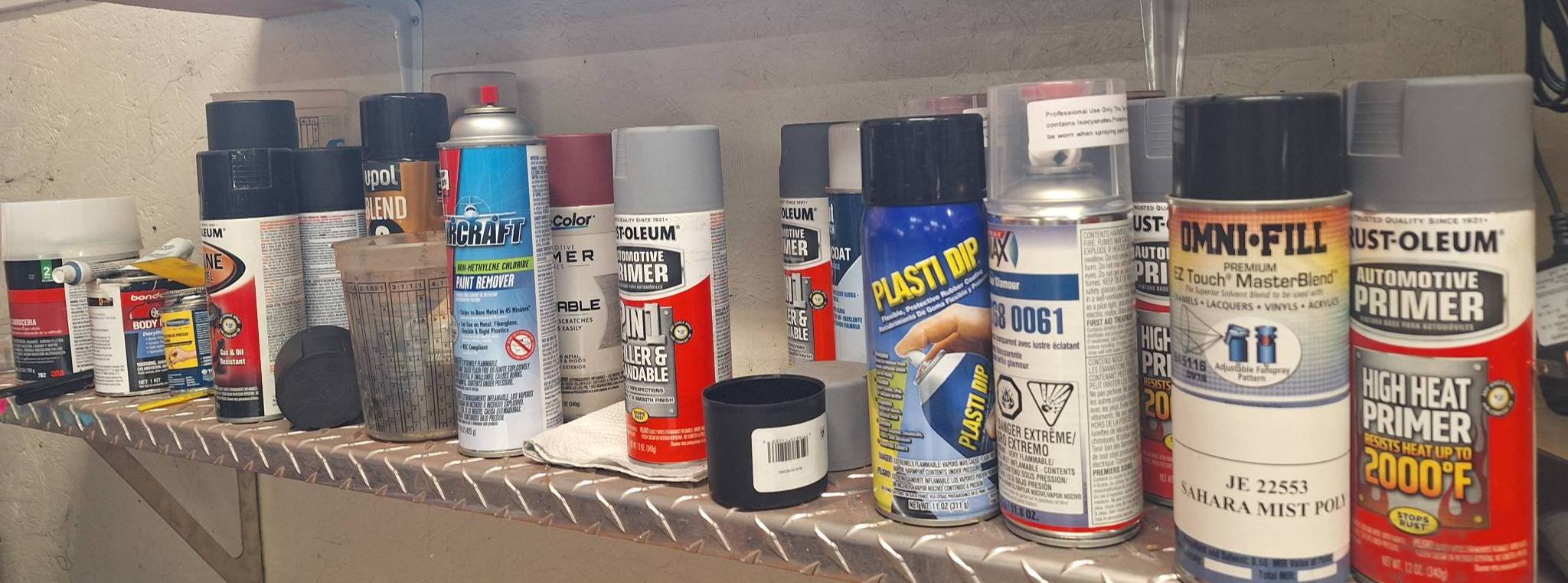 573 Automotive Spray Paints, Primers, and Related Supplies, contents of shelf – Partials