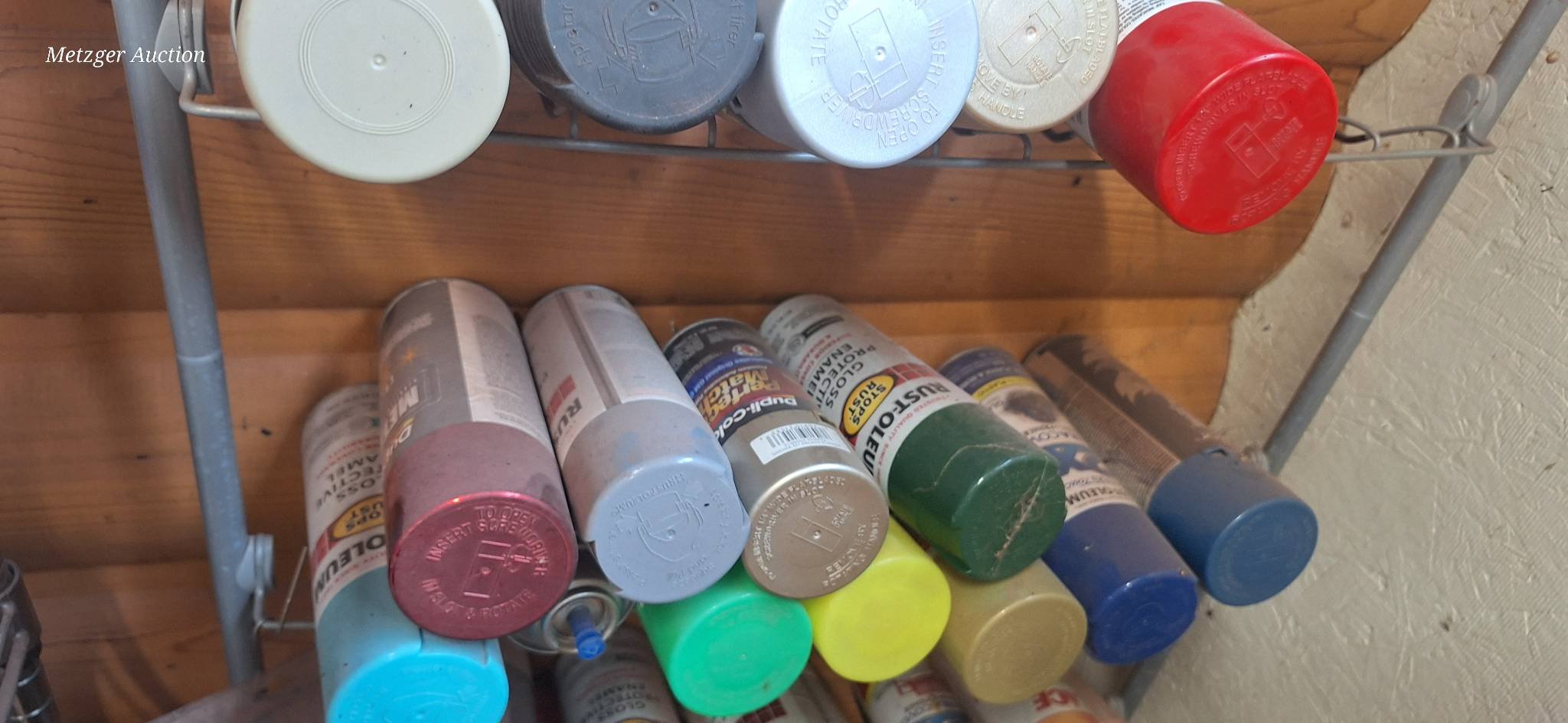 575 30+ Spray Paint Cans on Metal Storage Rack, Partials – RACK NOT INCLUDED