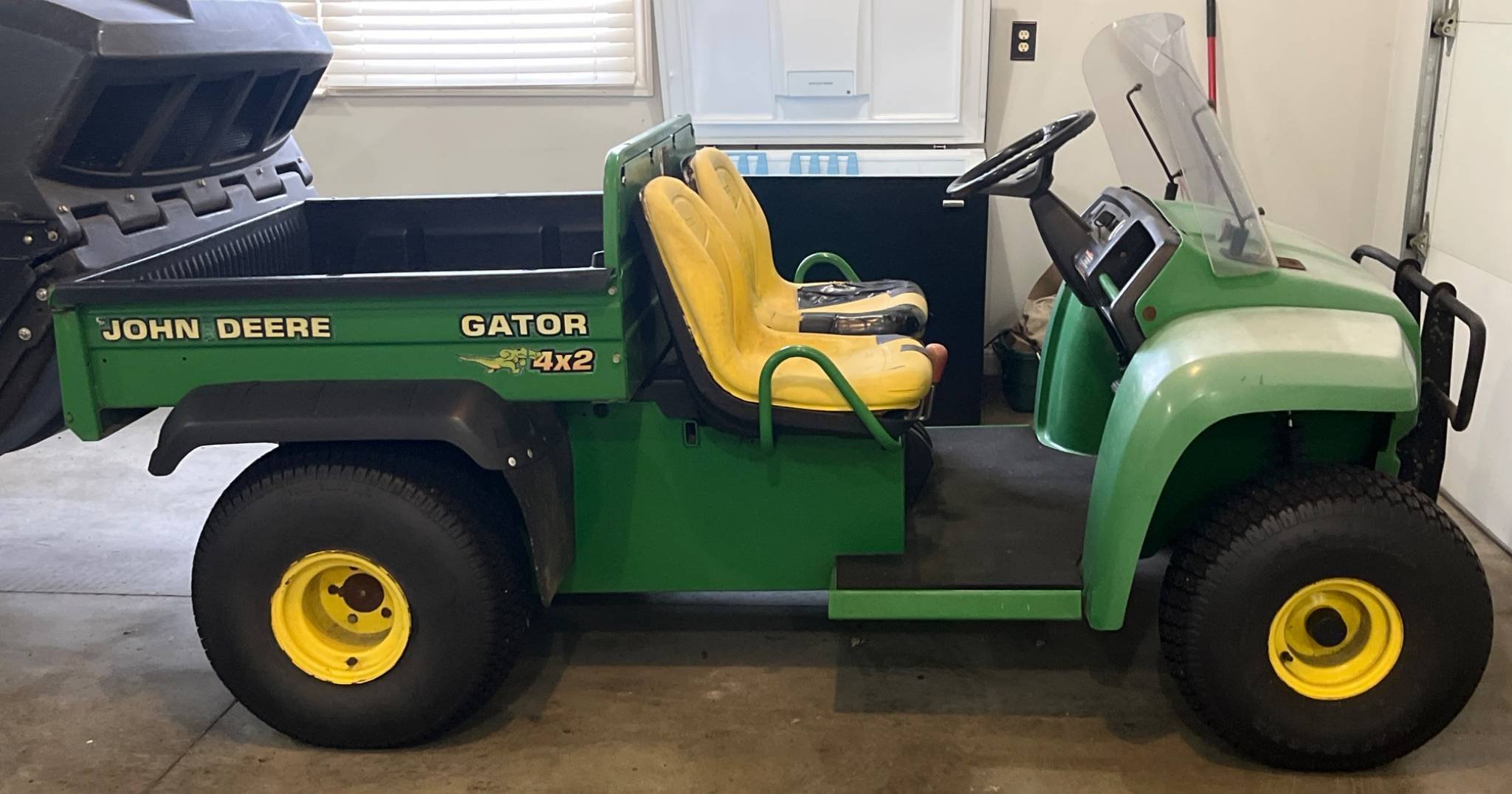 6 John Deere Gator Utility Vehicle with Dump Bed and Bench Seats 4×2, 944.8 hours, Runs and Drives, Crack on body, VIN W004X2081123