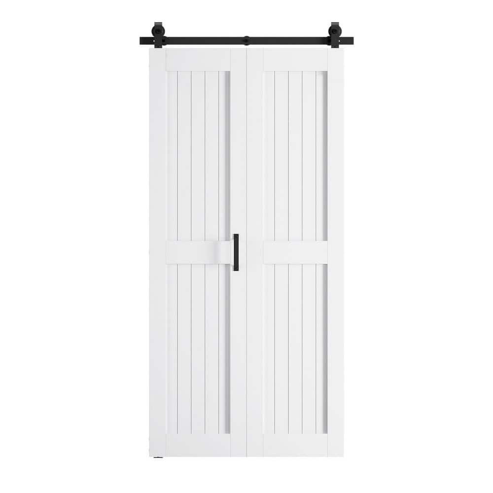741055 "SOCBAZZAR - 24 in. x 84 in. Bi-Fold Paneled H Shape White Finished MDF Composite Sliding Barn Door with Hardware Kit
