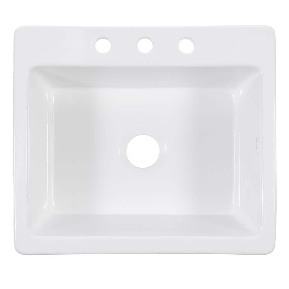 741068 JACKSON - Jackson 25 in. 3-Hole Drop-In Single Bowl Crisp White Fireclay Kitchen Sink