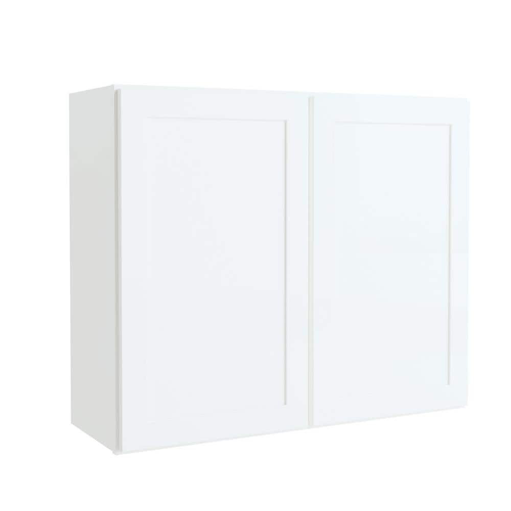 741076 HAMPTON BAY - Courtland 36 in. W x 12 in. D x 30 in. H Assembled Shaker Wall Kitchen Cabinet in Polar White