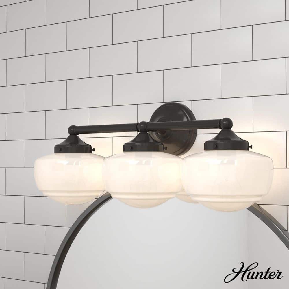 741082 HUNTER - Saddle Creek 23.5 in. 3-Light Noble Bronze Vanity Light with Cased White Glass Shades