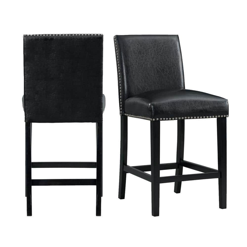 741033 GYMAX - Set of 2-Bar Stools 25 in. Counter Height Barstool Pub Chair Rubber Wood Black - SEE PRODUCT DETAILS