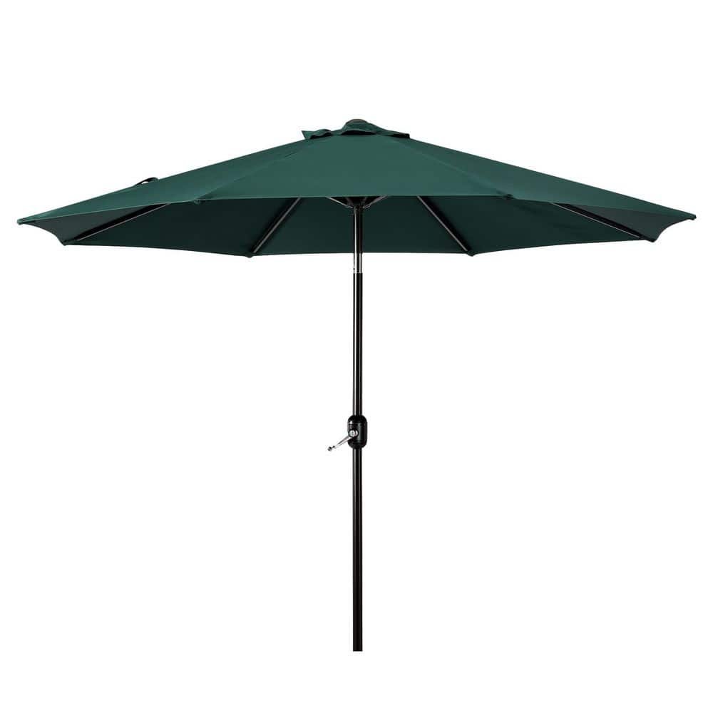 741067 PELLEBANT - 9 ft. x 5 ft. Rectangular Metal Market Crank and Tilt Outdoor Patio Umbrella in Tan with 45 lbs. Concrete Wheeled Base